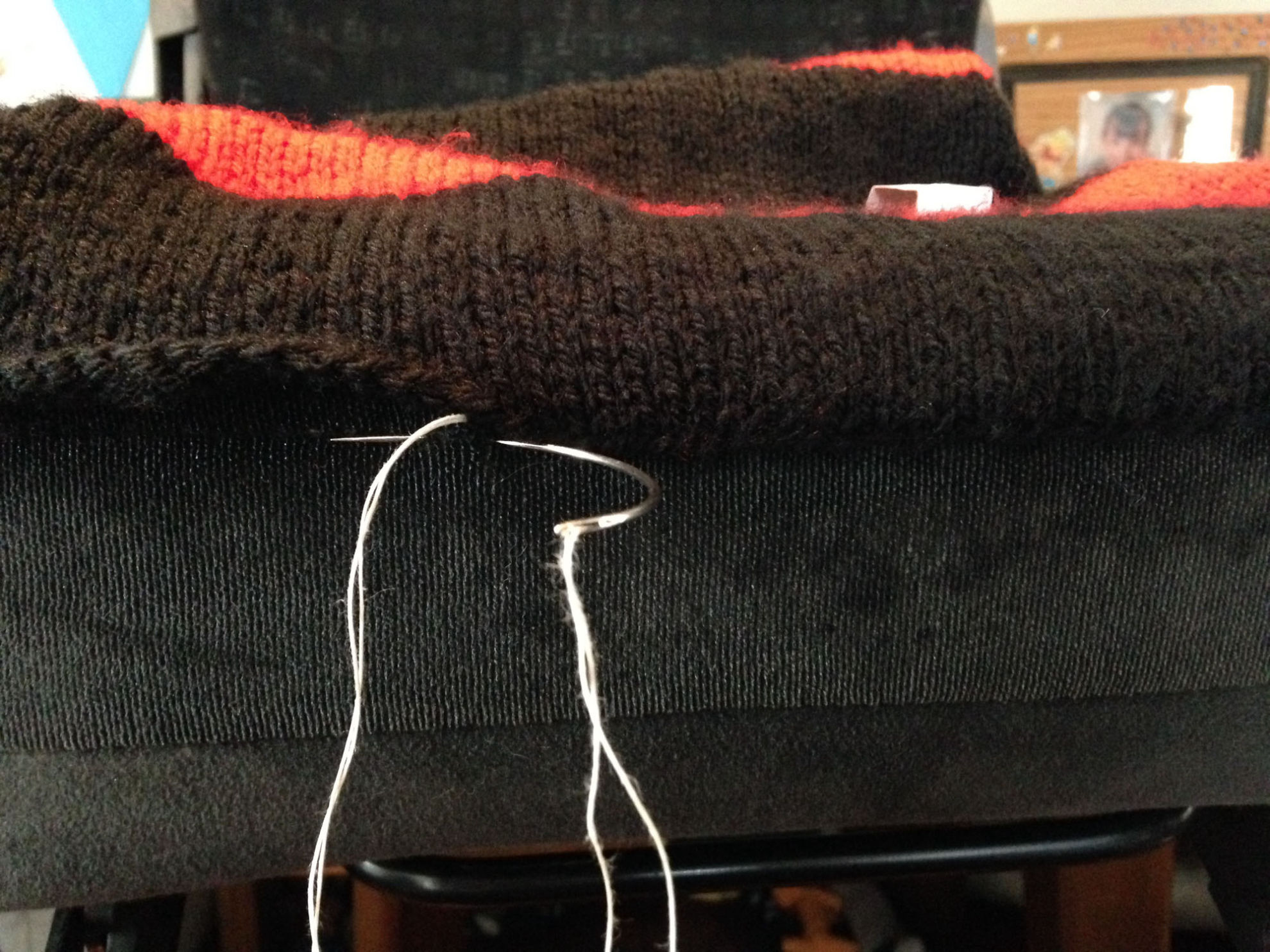 Material: My Boshi Garn No. 1 Schwarz, Rot, Stoff Schwarz,                          Bauernmalfarbe -Öl Gemisch