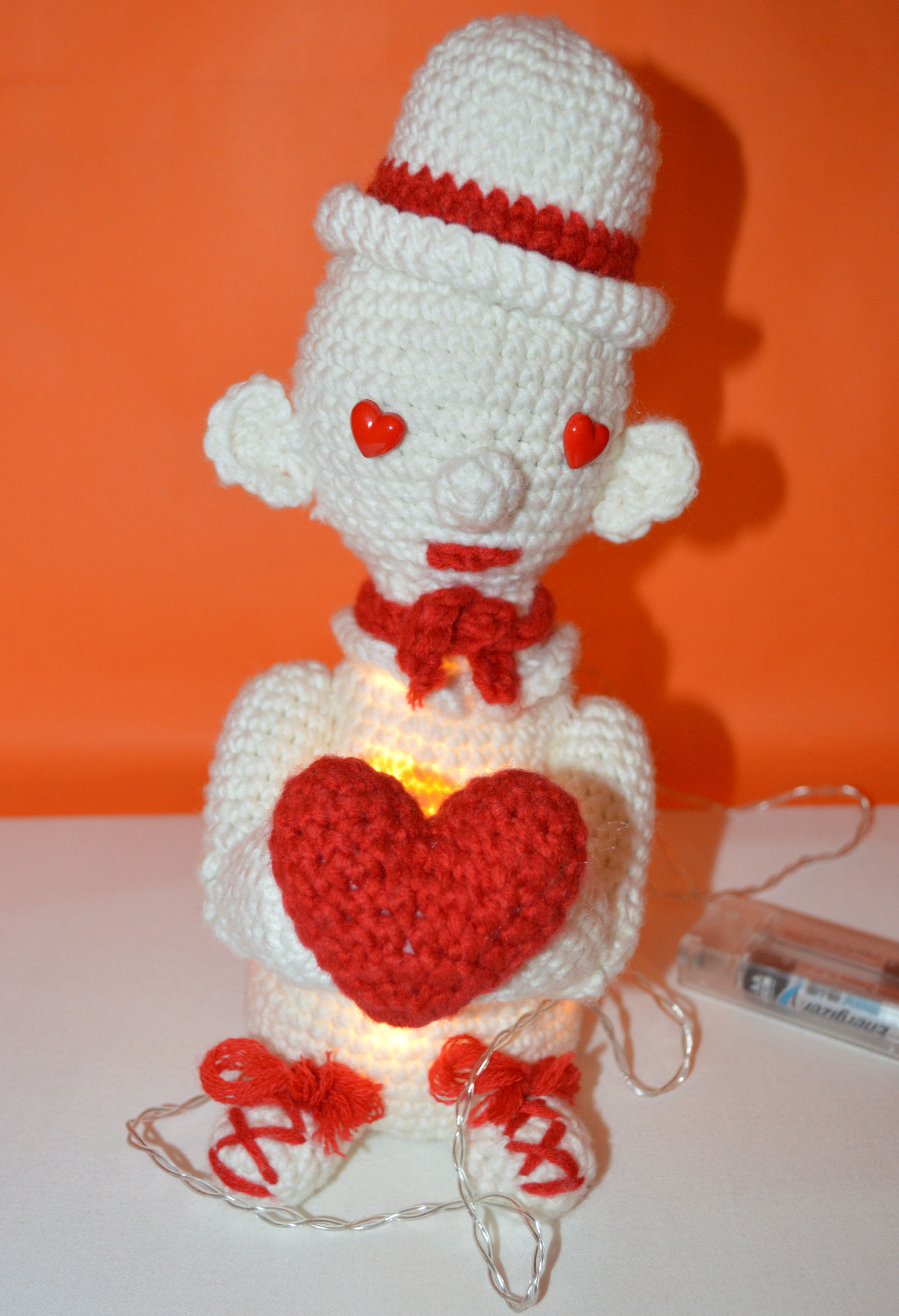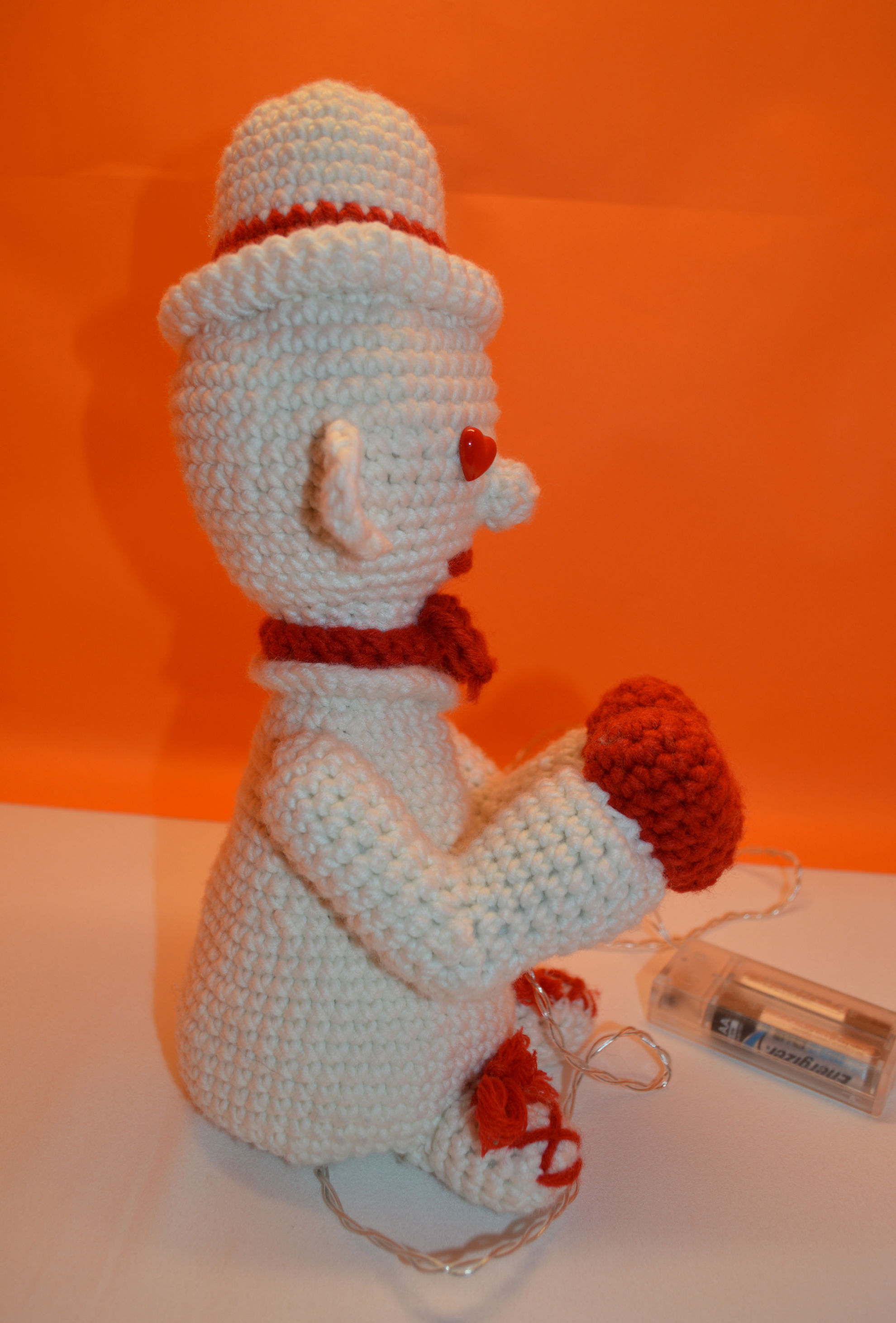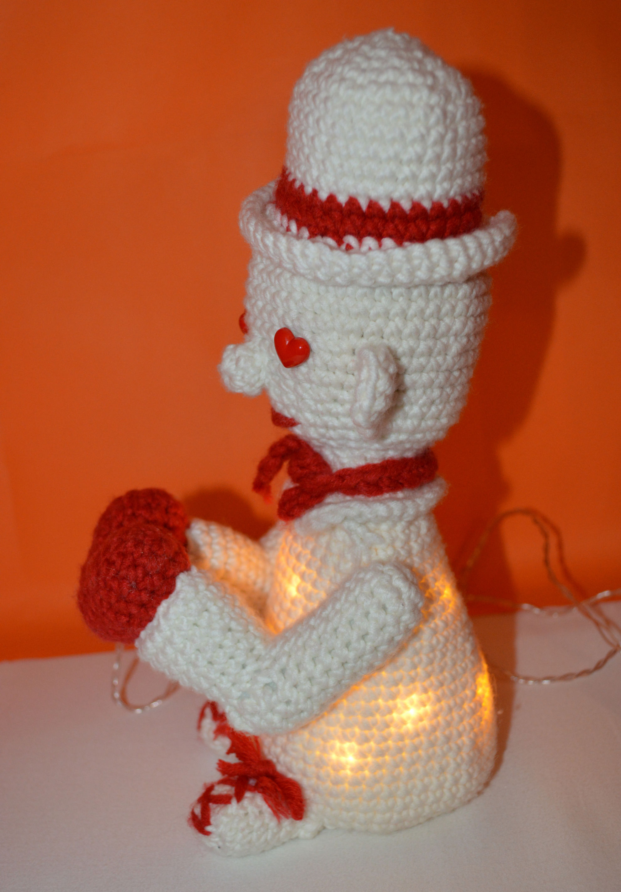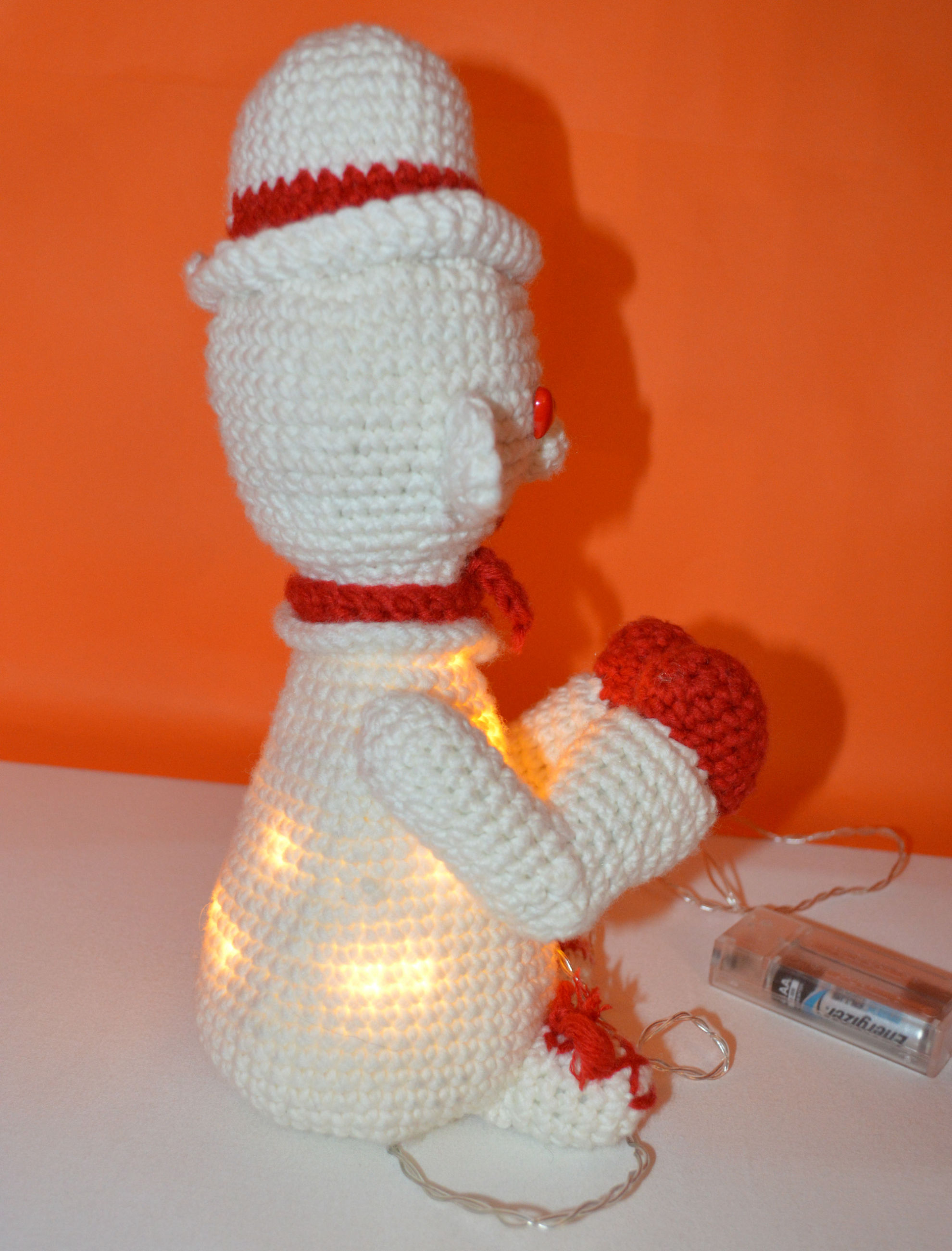Material: Wolle Weiss, Rot, Lichterkette Batteriebetrieben, Herzknöpfe, Bastelwatte