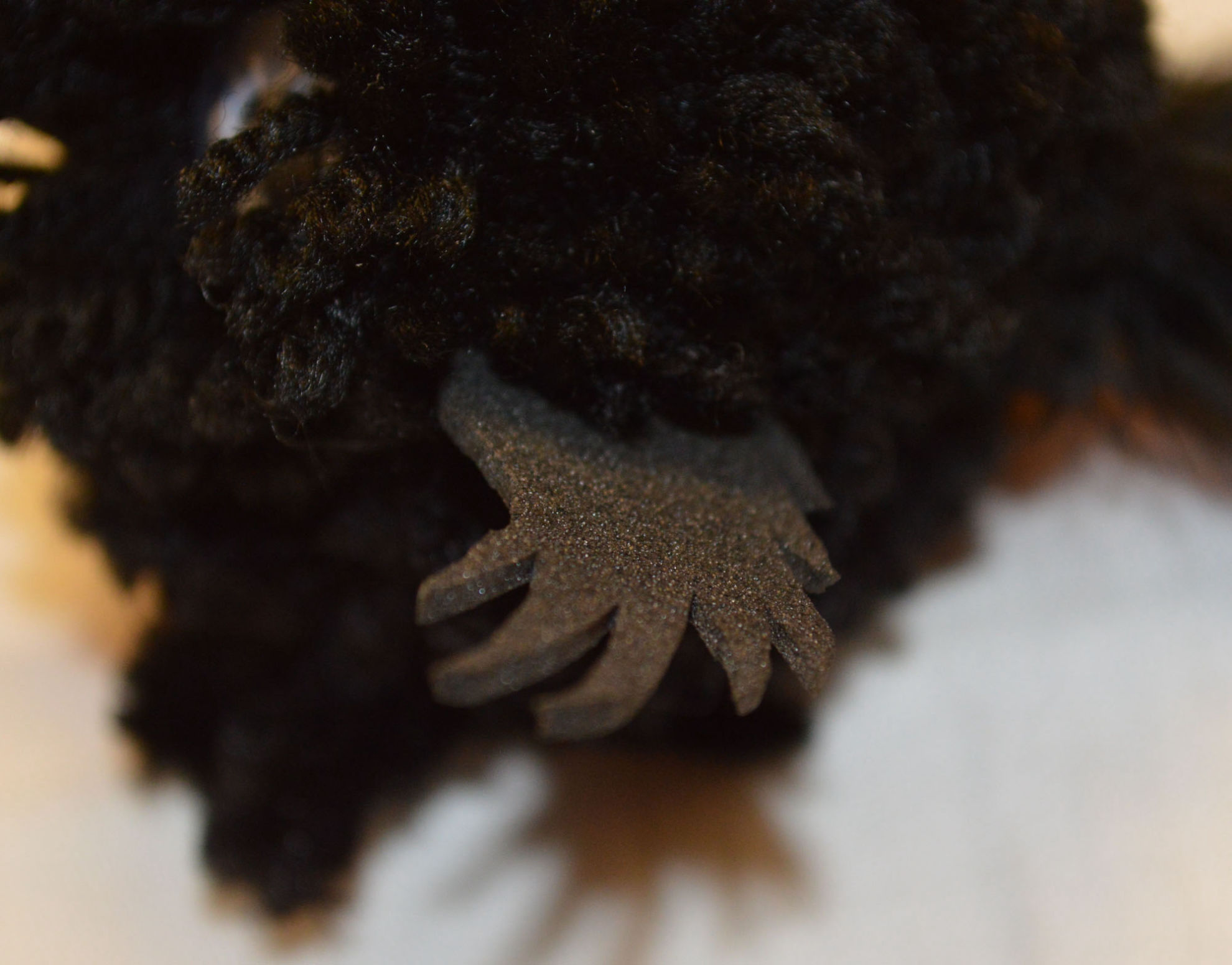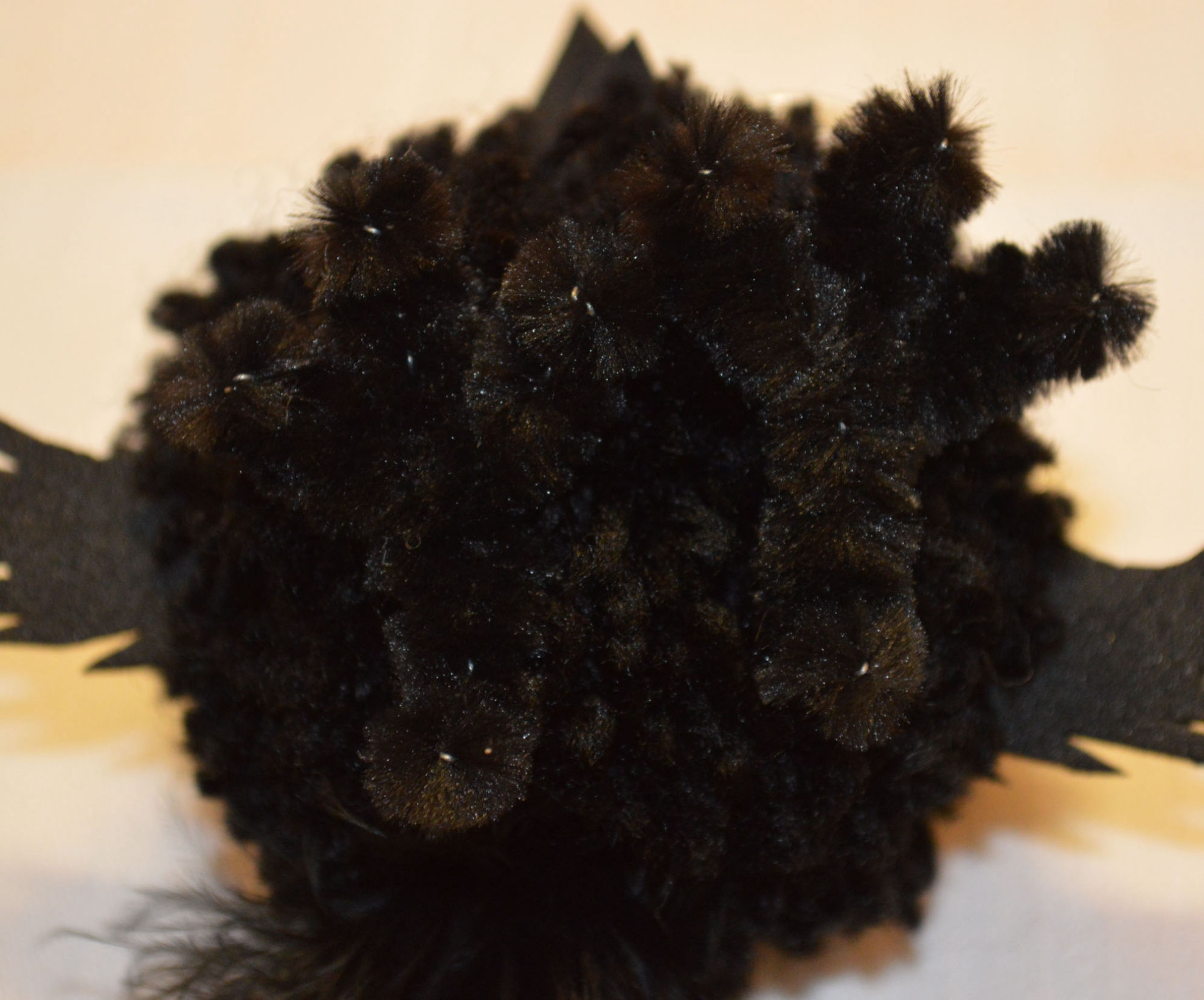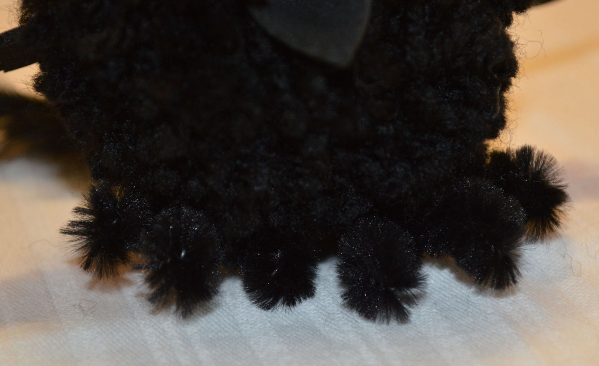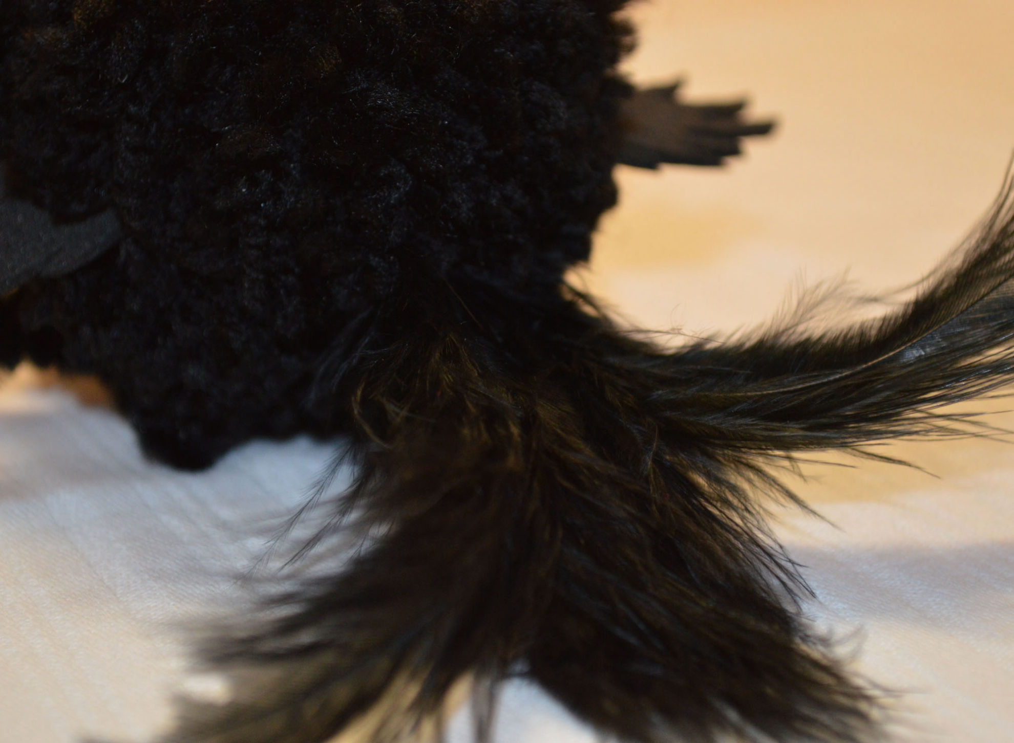 Material: Wolle Schwarz, Moosgummi, Chenillendraht, Bastelfedern, Wackelaugen, Schlüsselanhänger