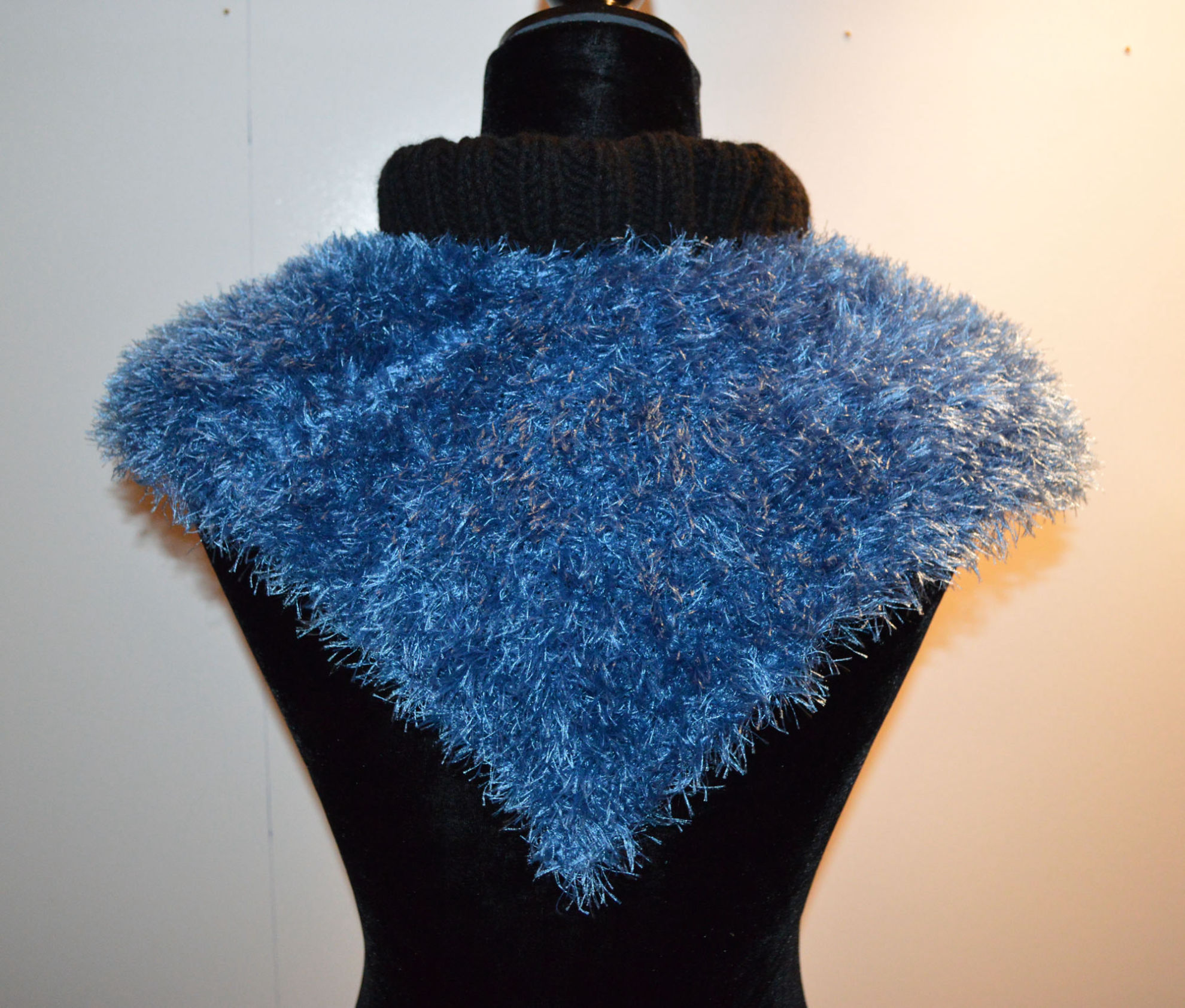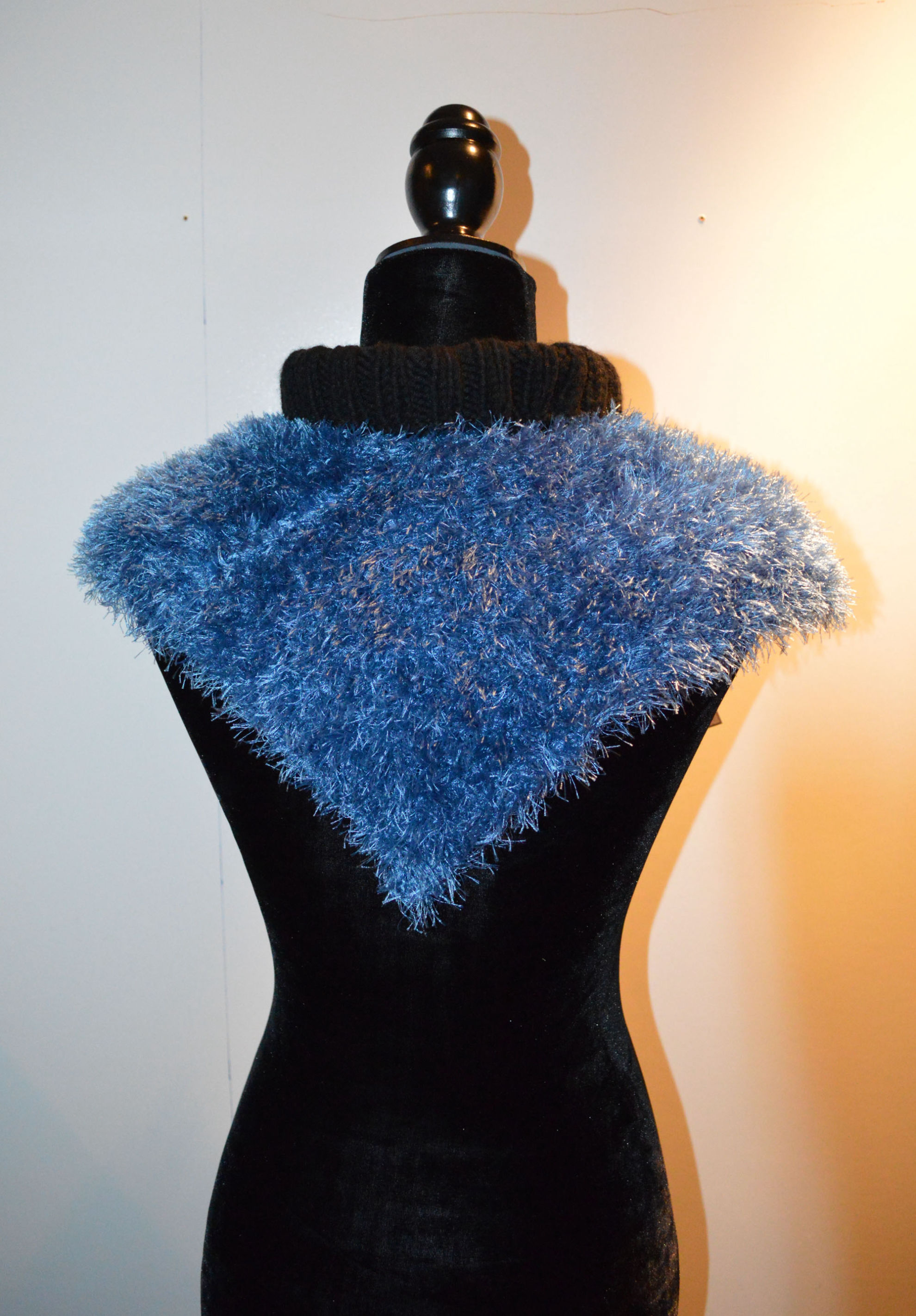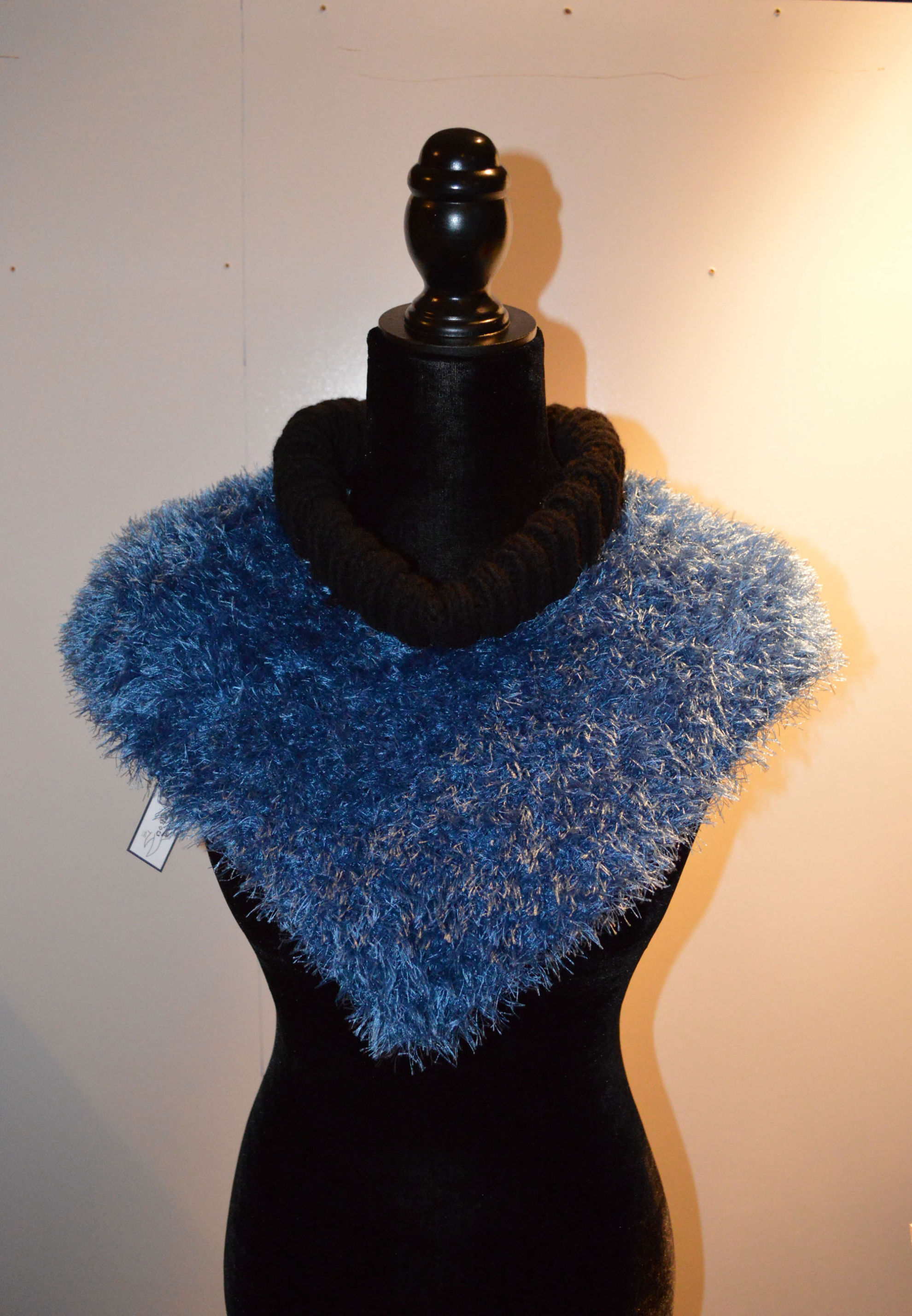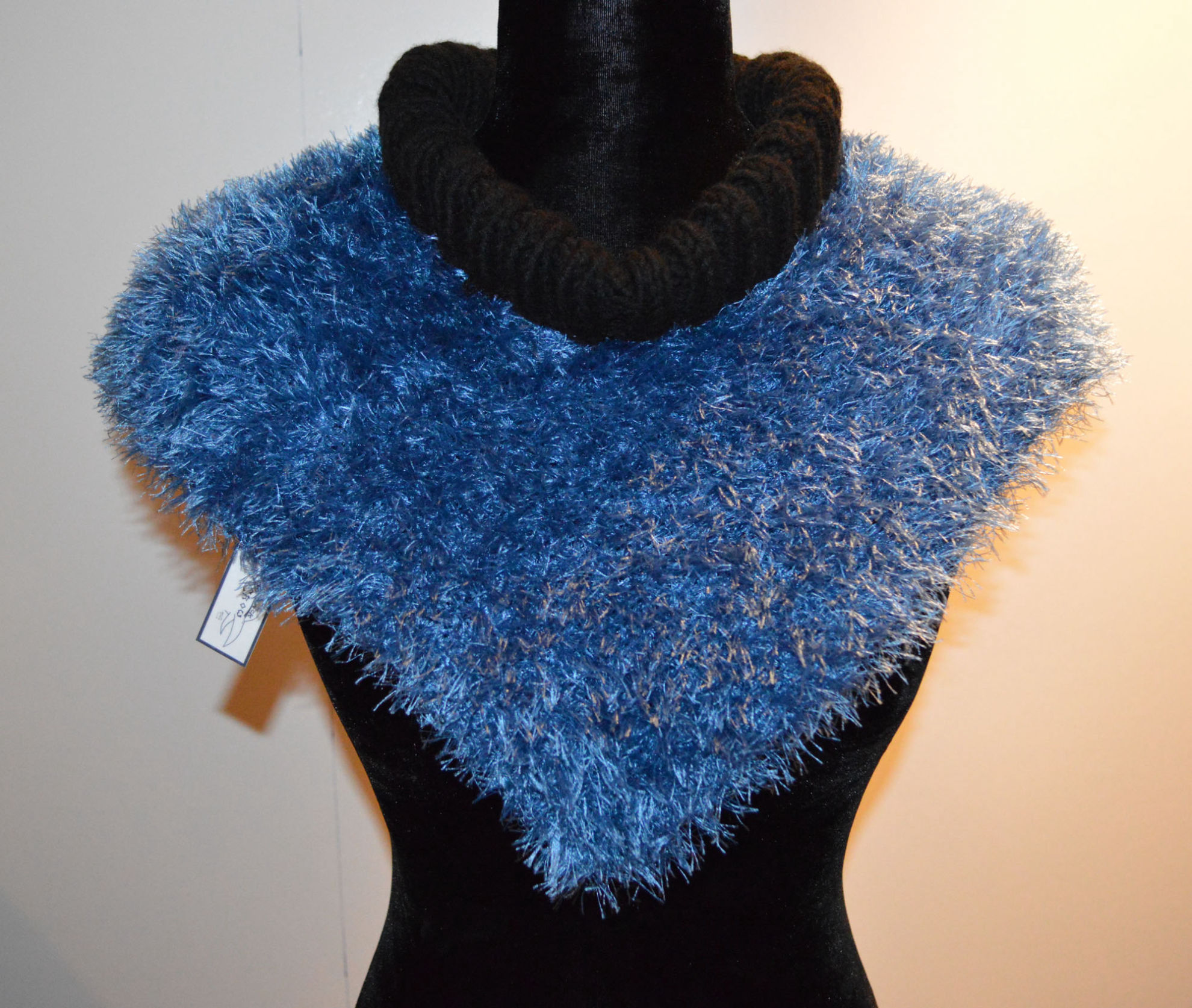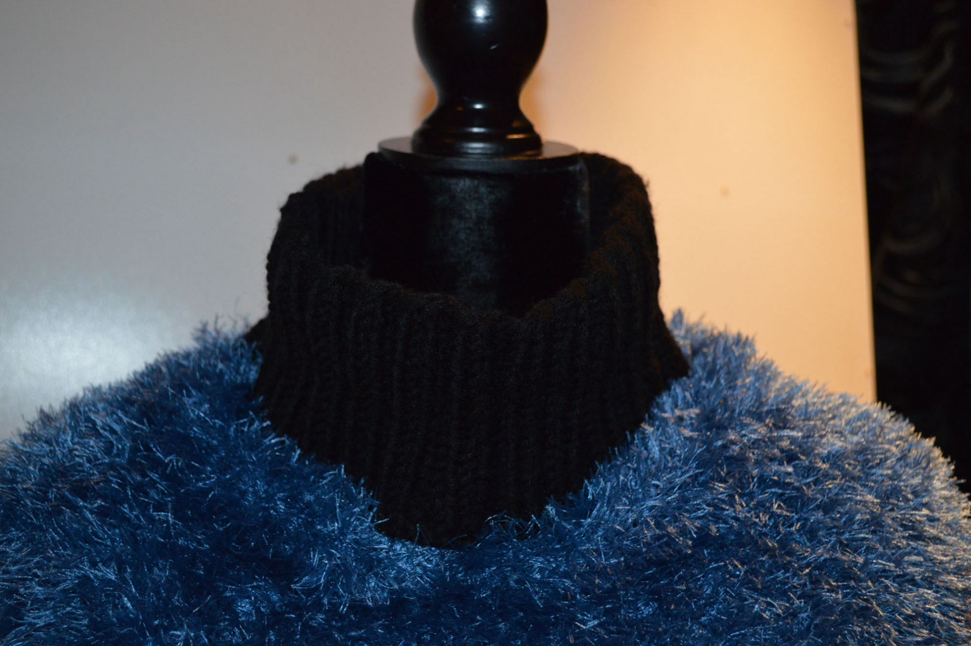 Material: Wolle, My Boshi Garn No.1 Schwarz, „Schoeller + Stahl“ la ola fashion Blau „0312“ Effektgarn/Fransengarn