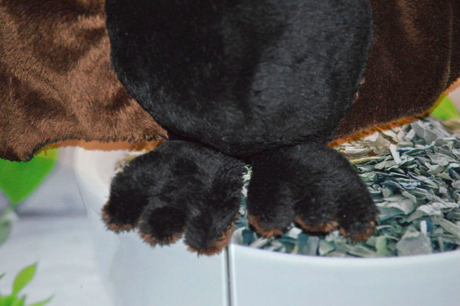 Material: Teddystoff Schwarz, Braun, Glasaugen, Bastelwatte