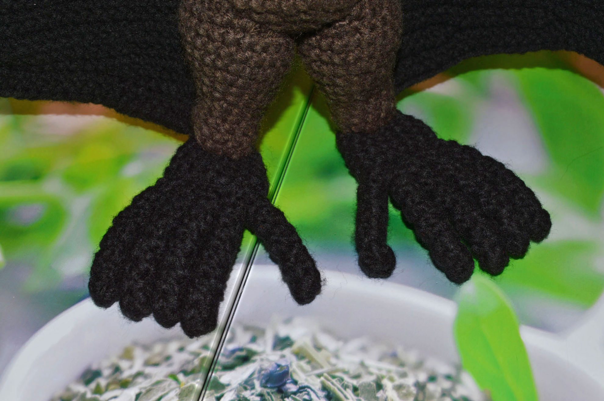 Material: Wolle My Boshi No. 1: Schwarz Braun, Glasaugen,                          Bastelwatte