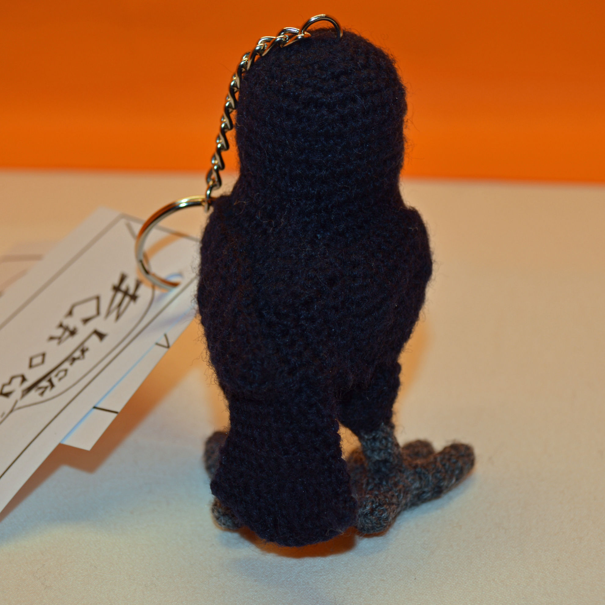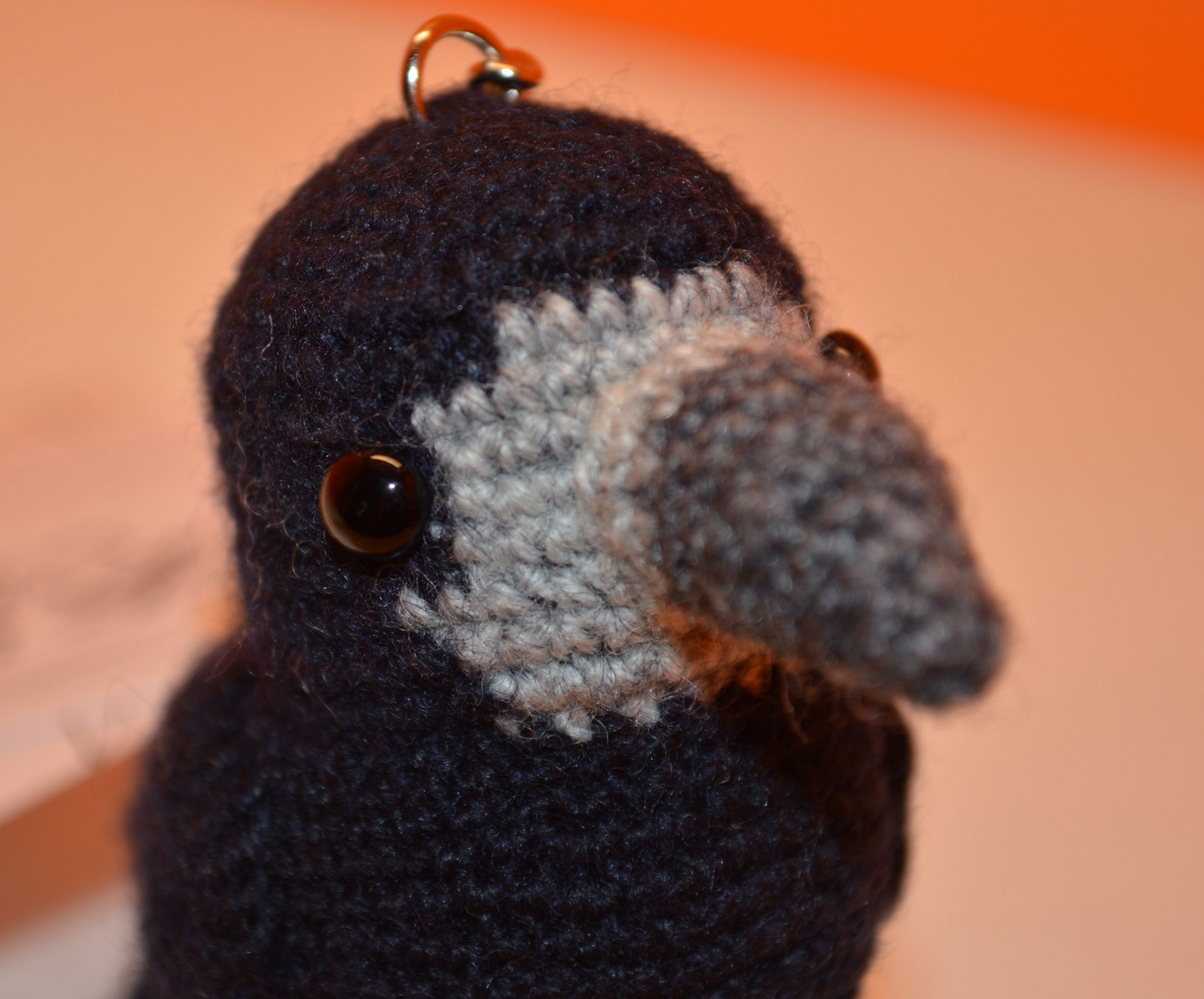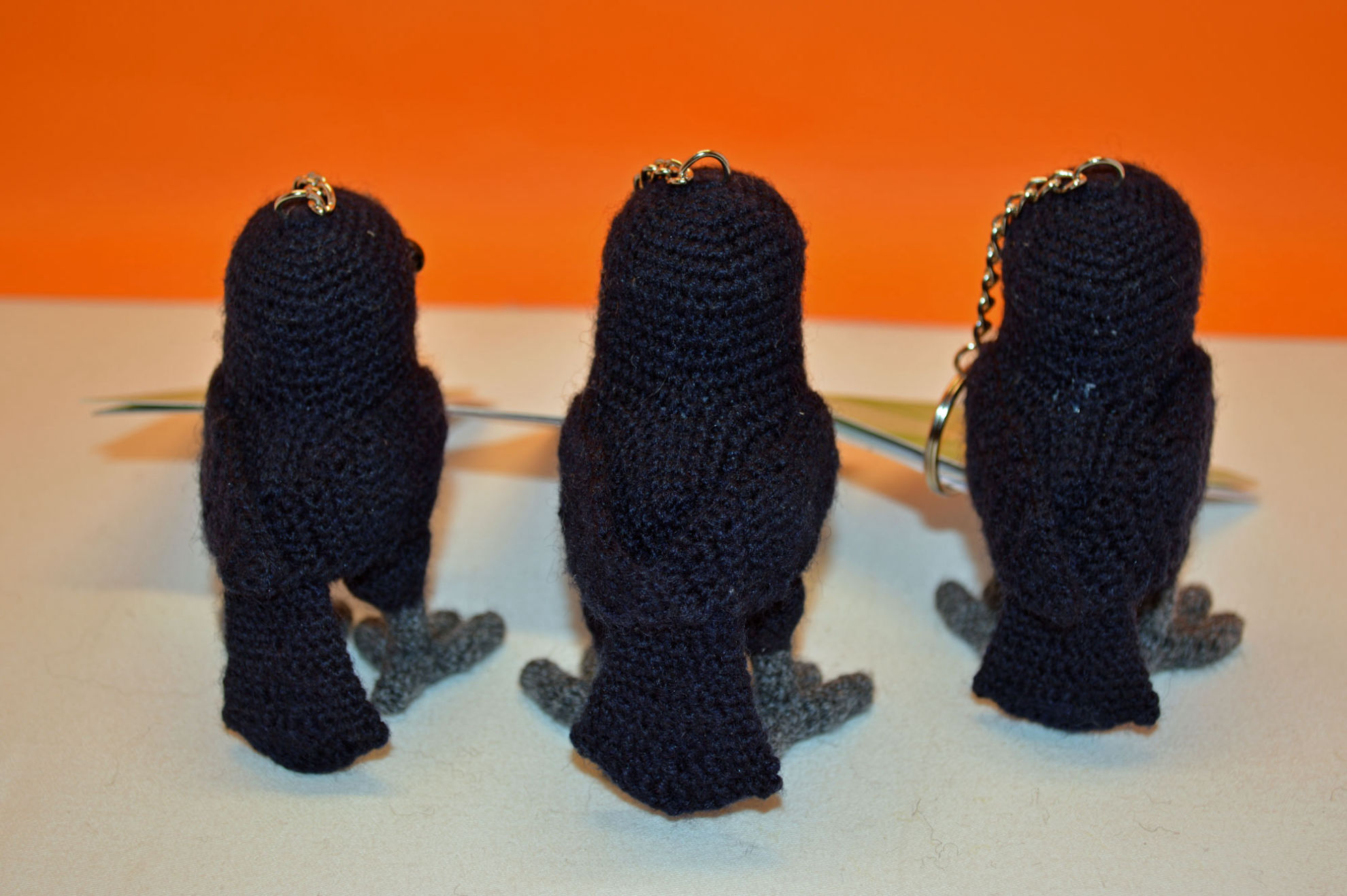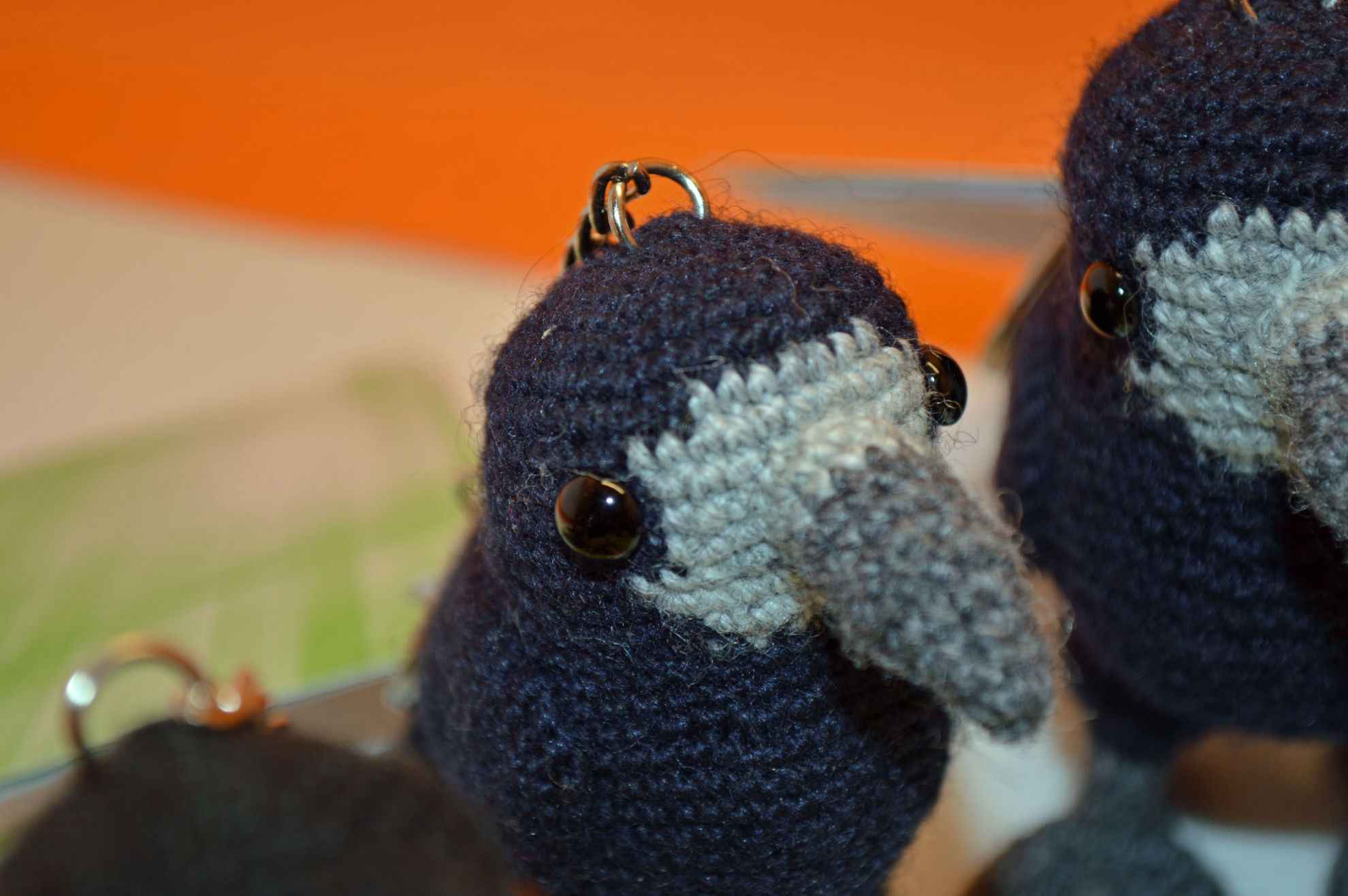 Material: Wolle Nachtblau, Grau, Hellgrau, Glasaugen, Bastelwatte
