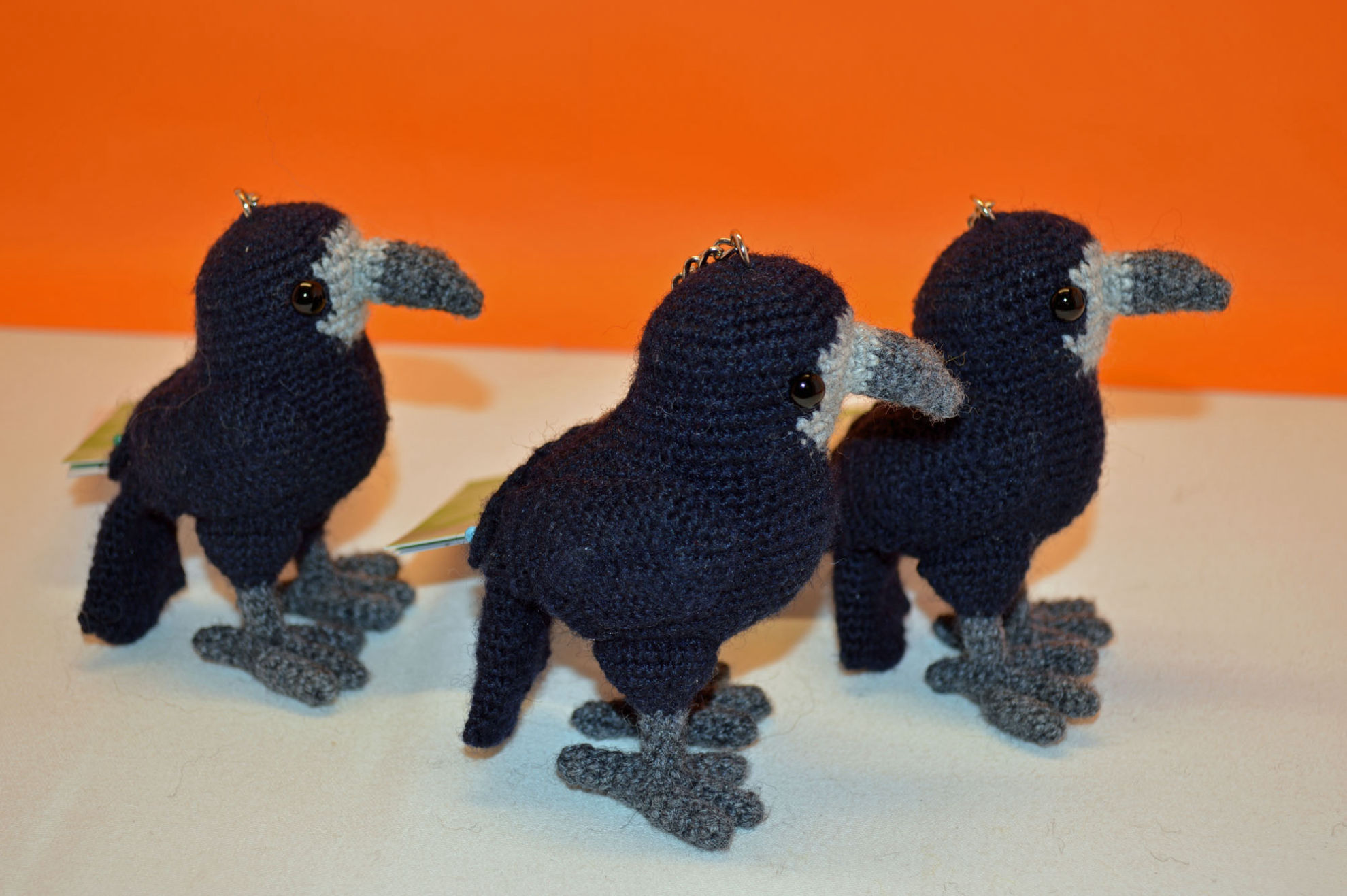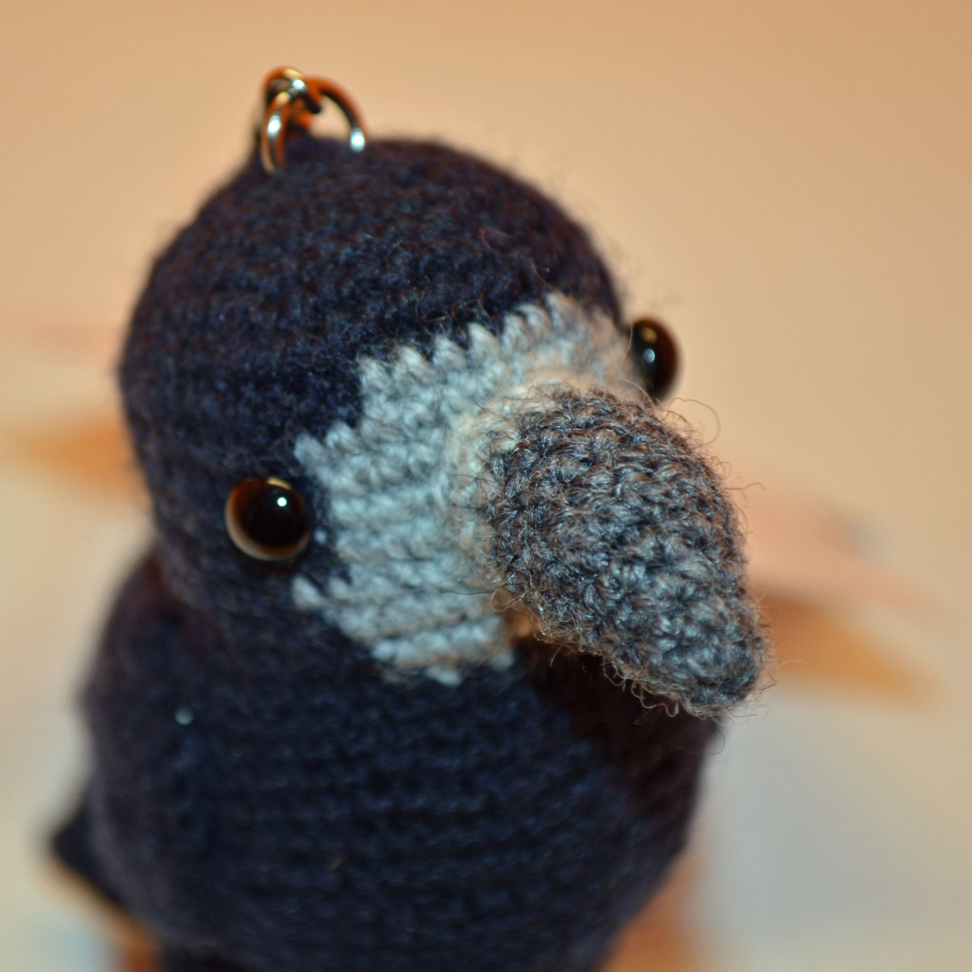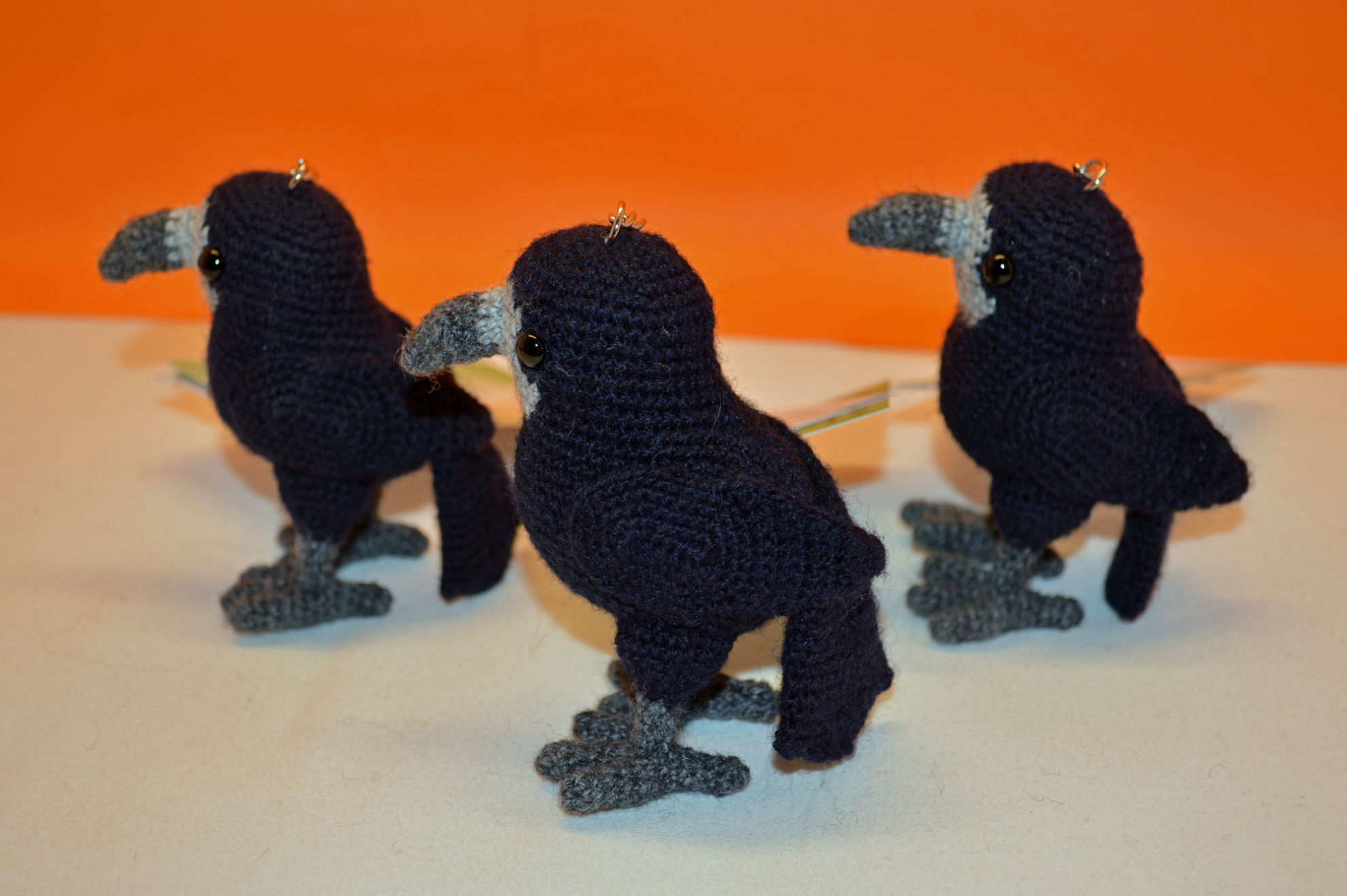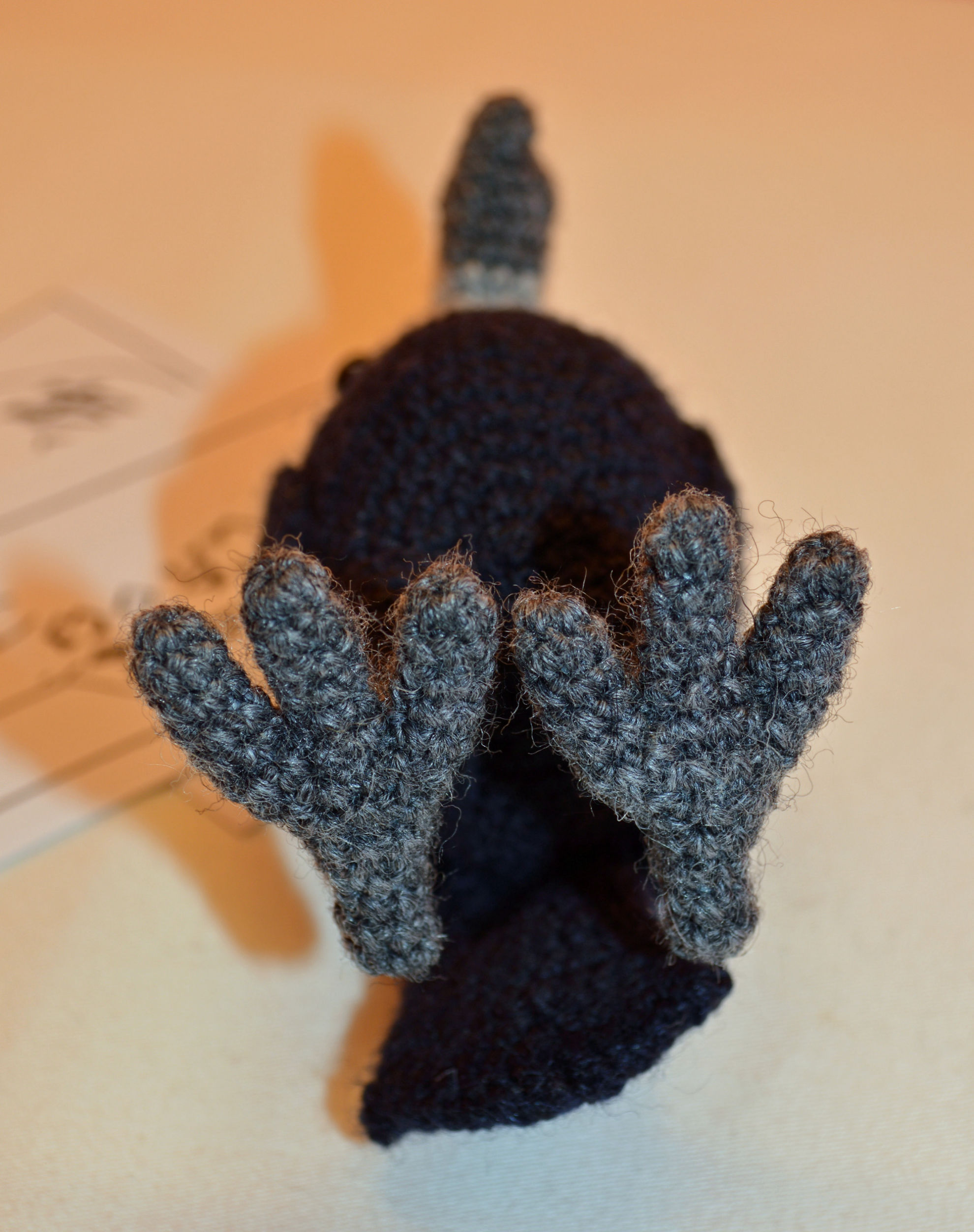 Material: Wolle Nachtblau, Grau, Hellgrau, Glasaugen, Bastelwatte