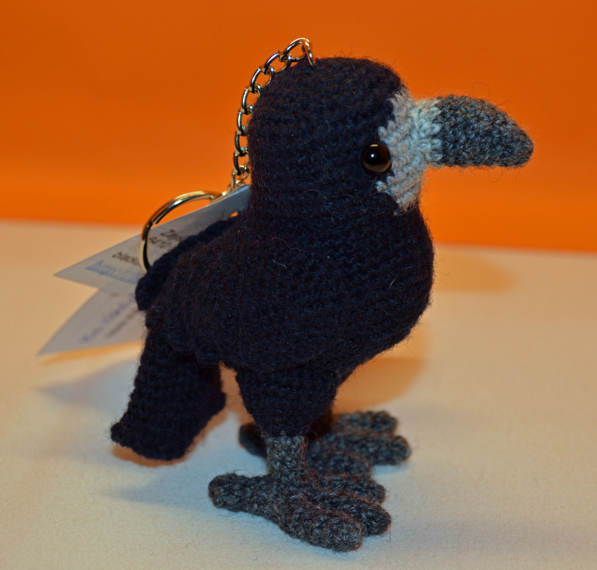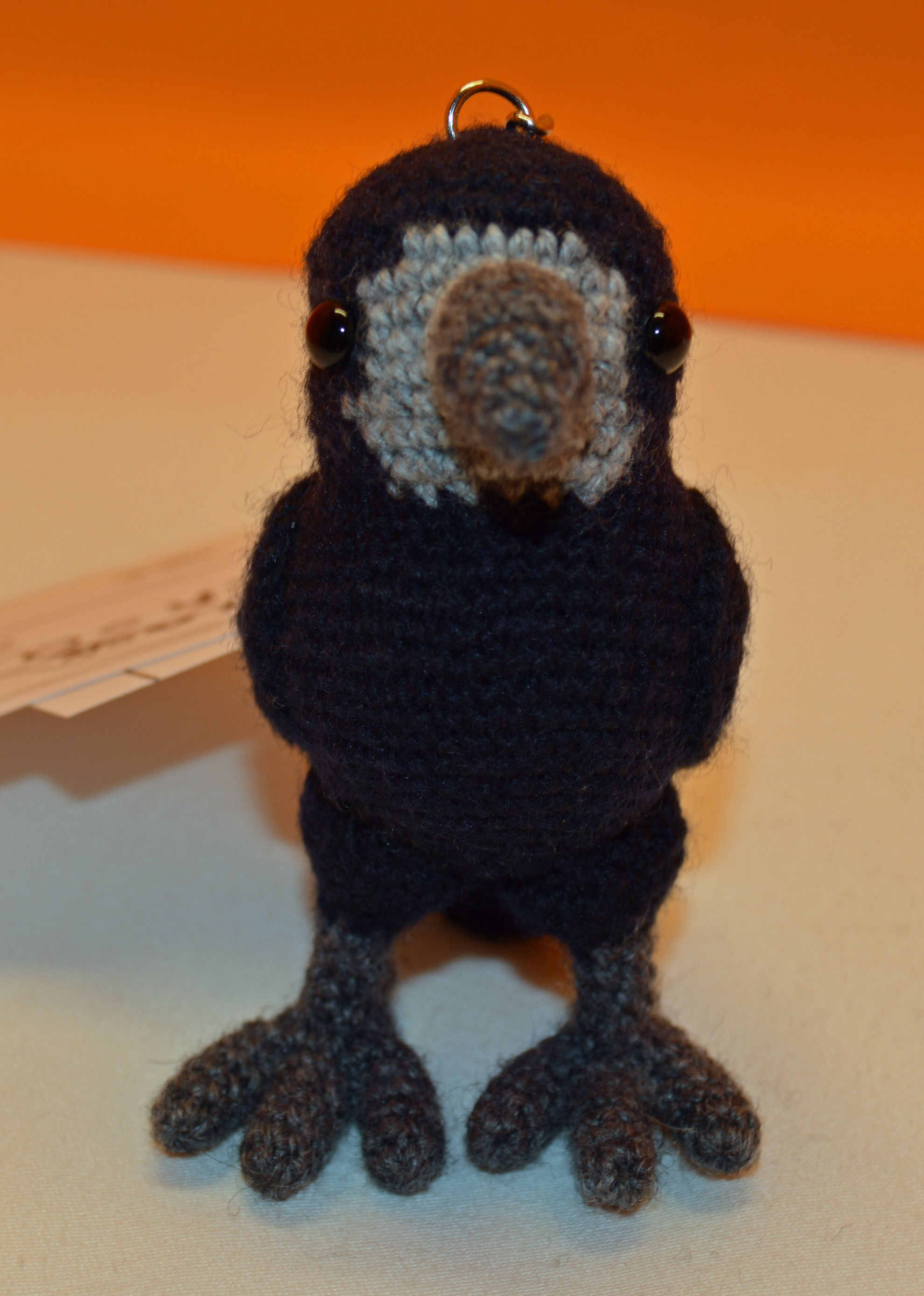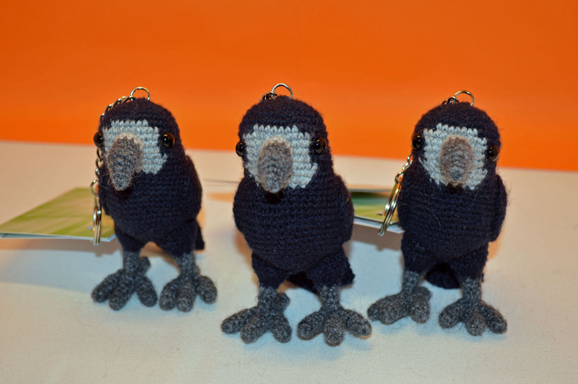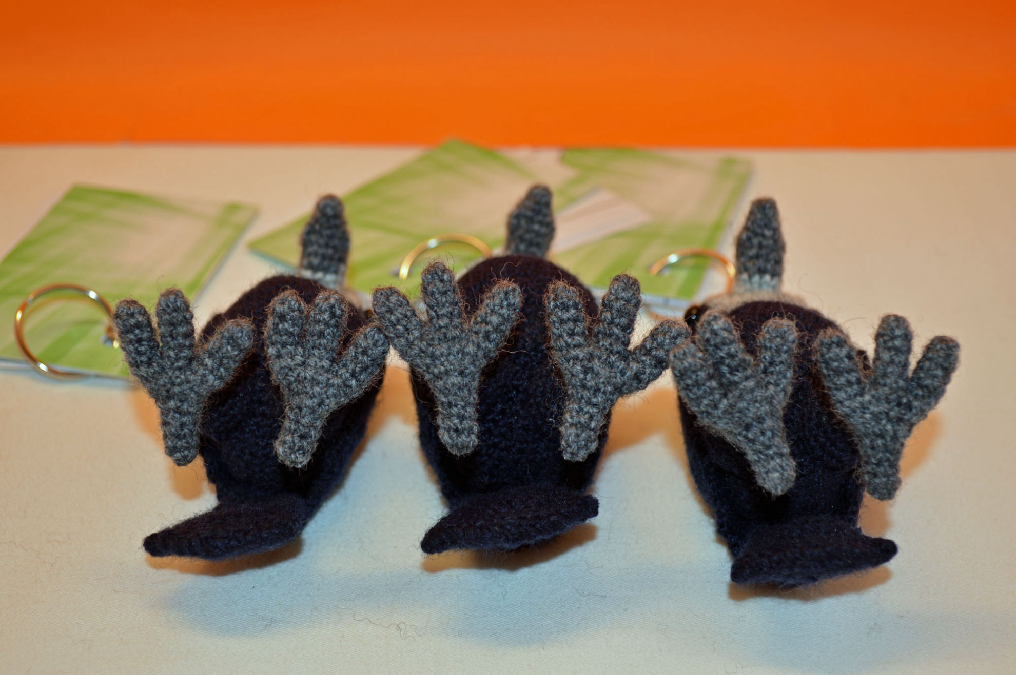 Material: Wolle Nachtblau, Grau, Hellgrau, Glasaugen, Bastelwatte