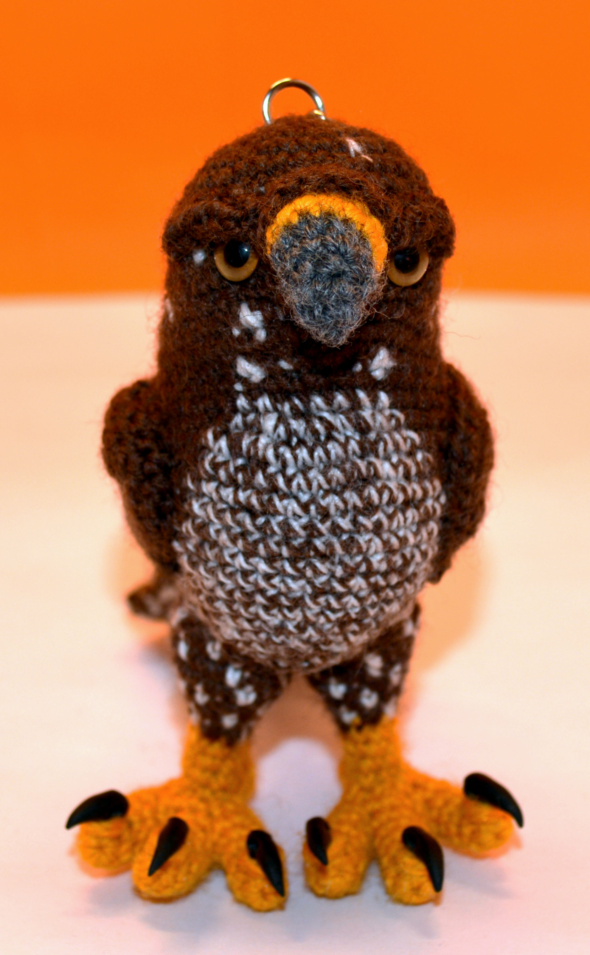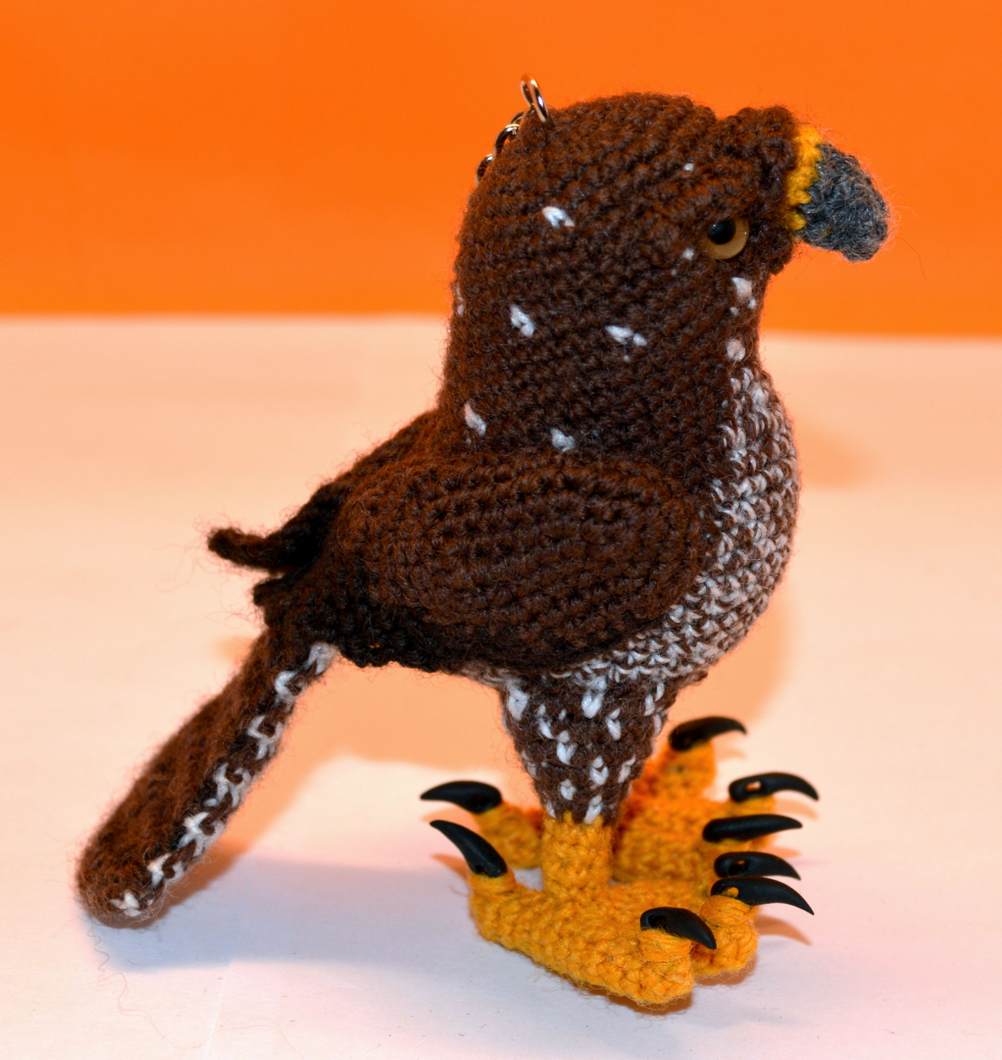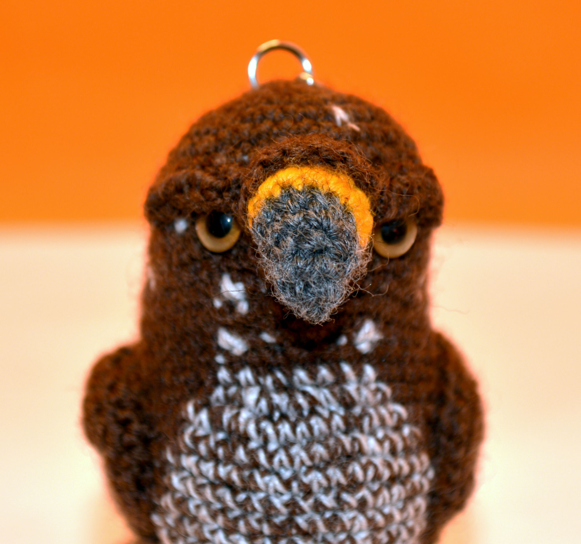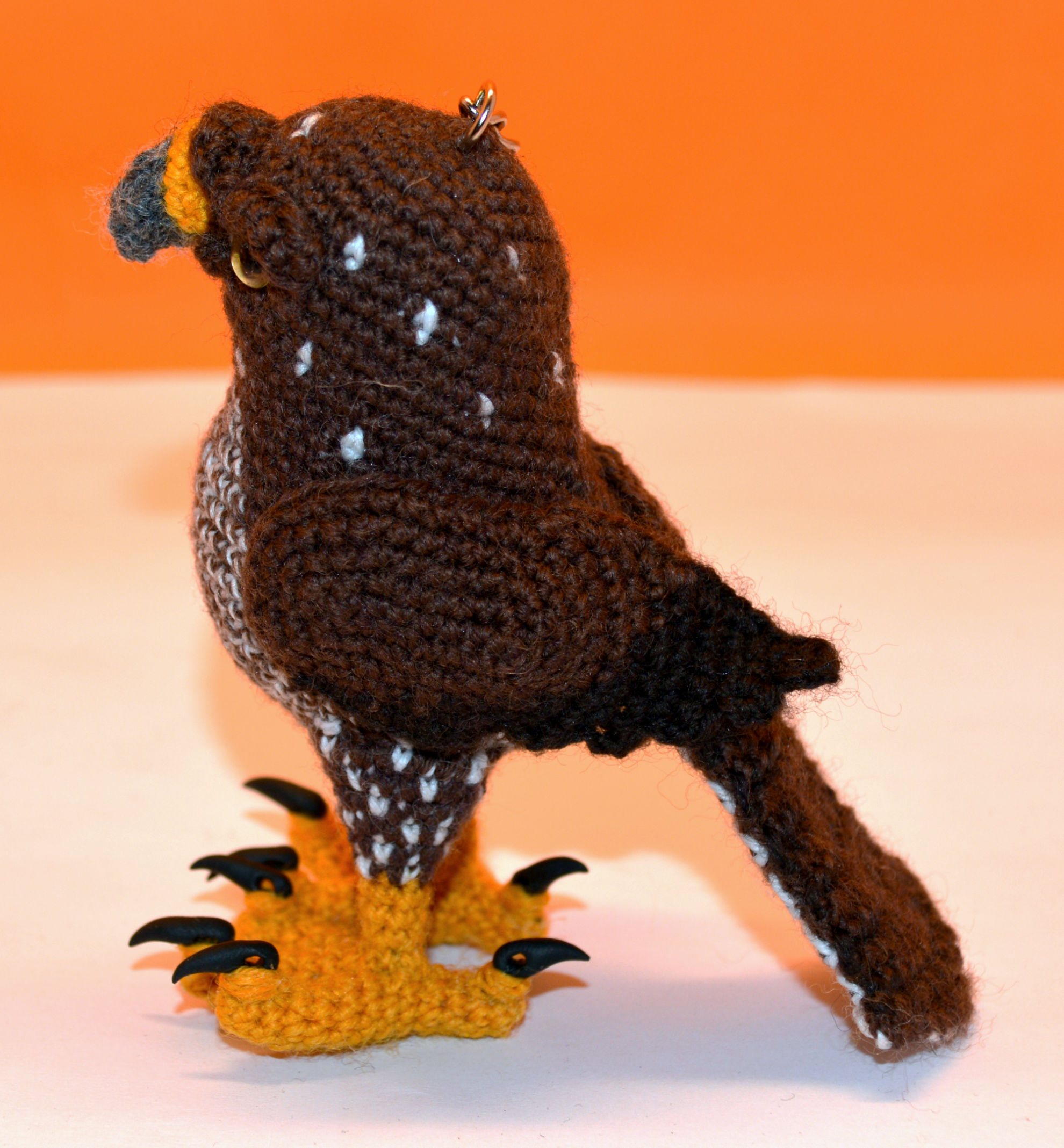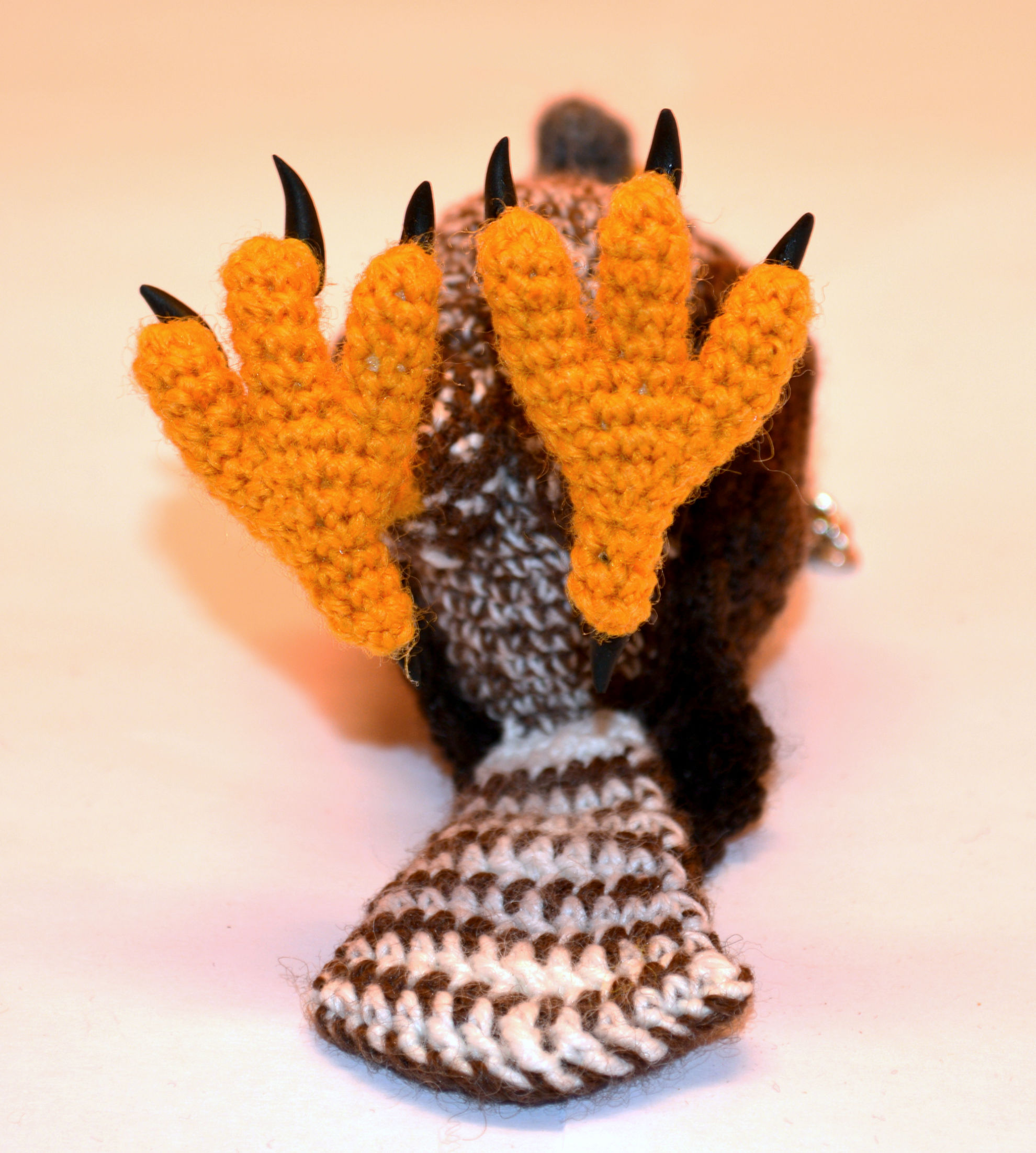 Material: Wolle Grau, Gelb, Chocco, Weiss, Fimo Krallen,                                Glasaugen, Bastelwatte