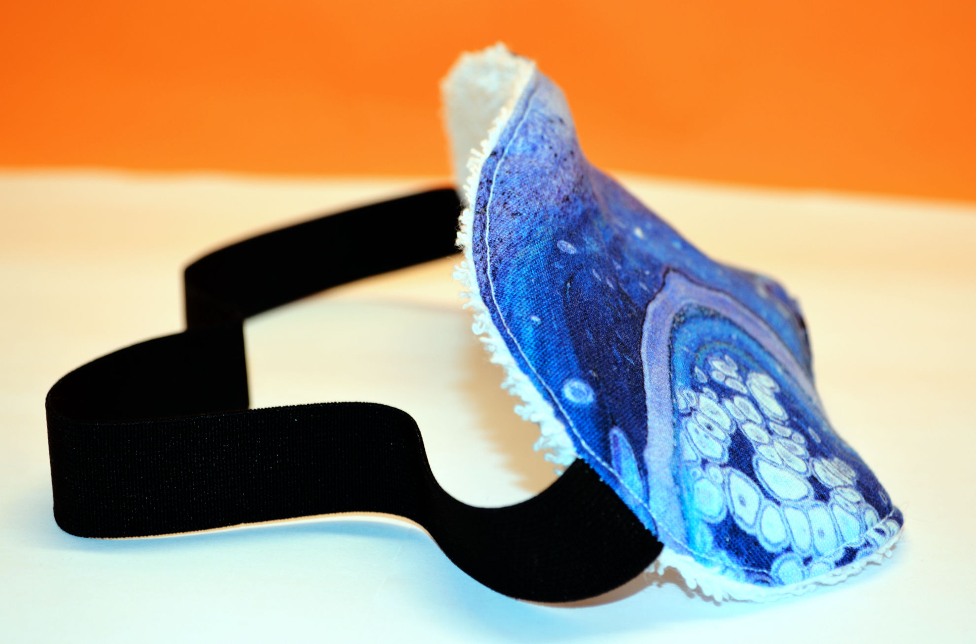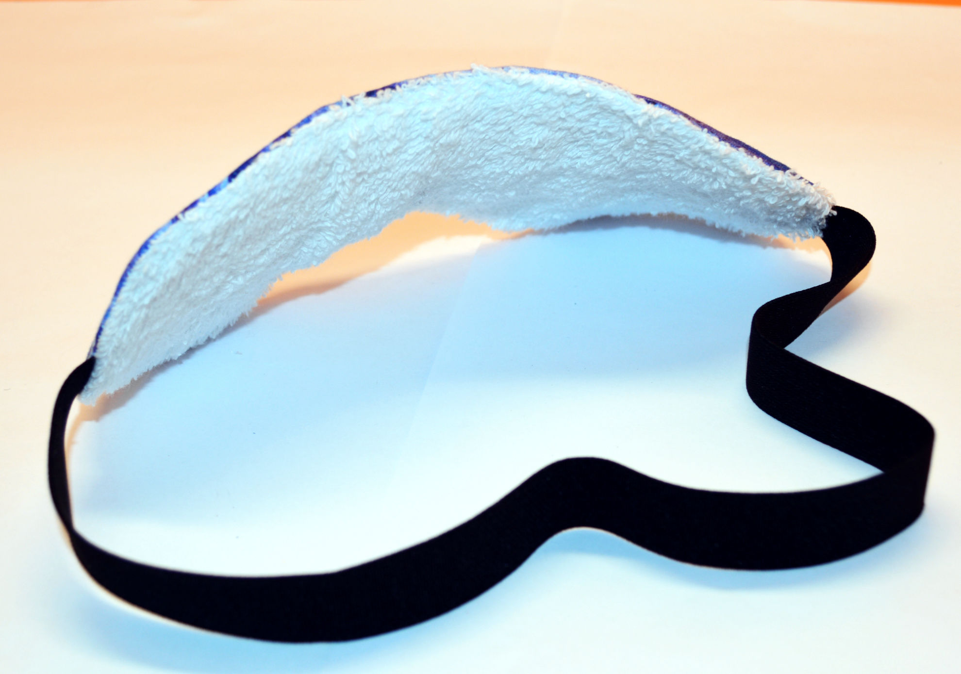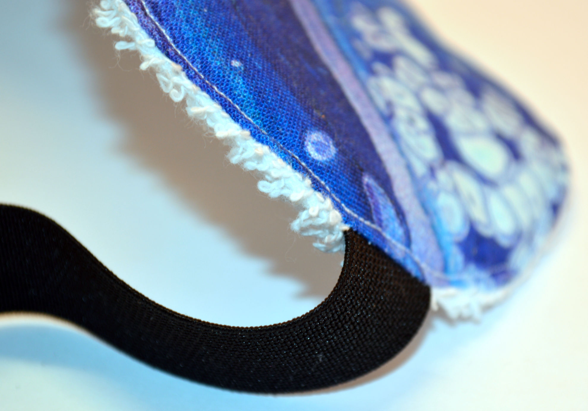 Material: Baumwollstoff Fusion II SWISH Royal, Frotteestoff                      Weiss, Elastikband schwarz, Volumenvlies