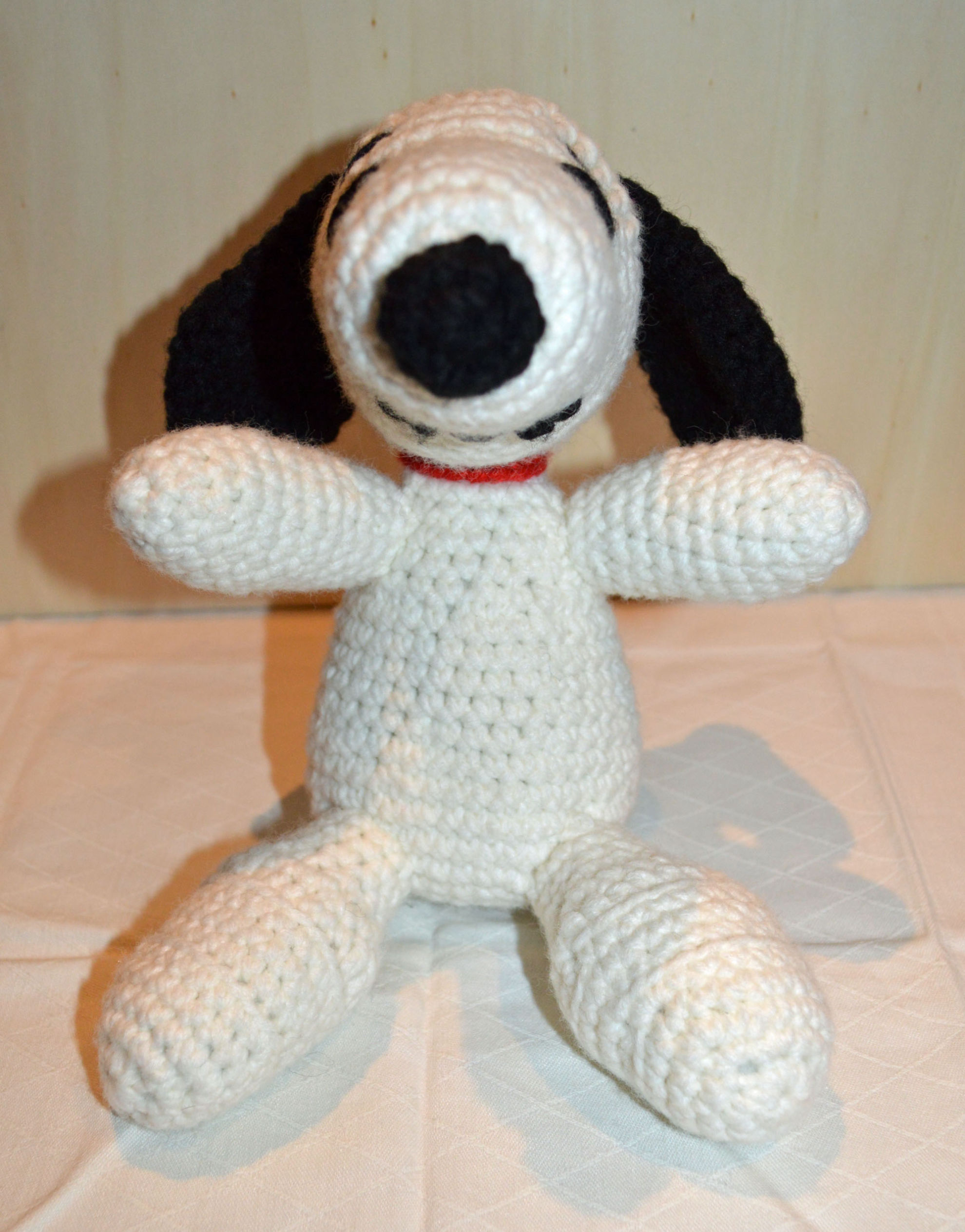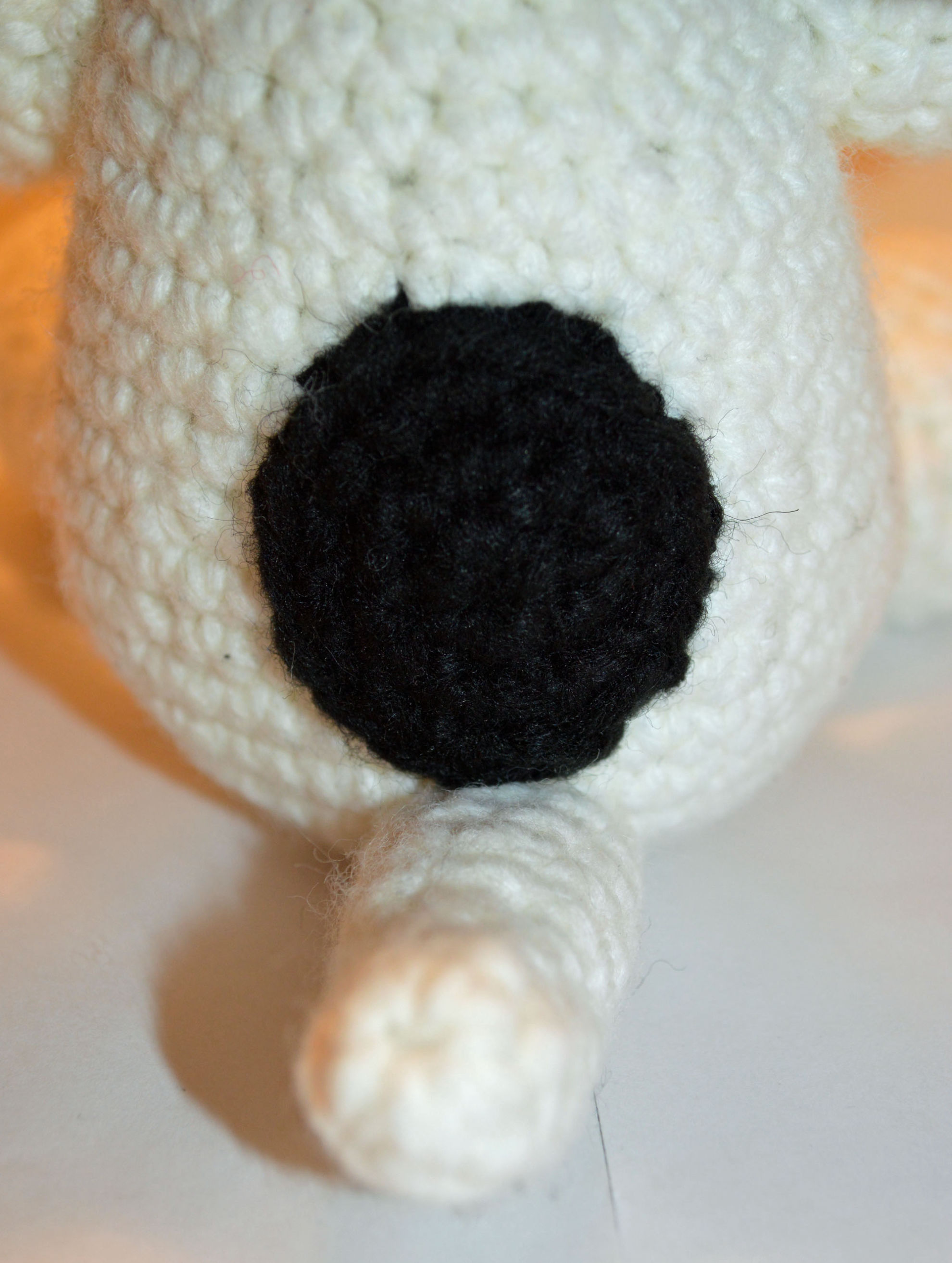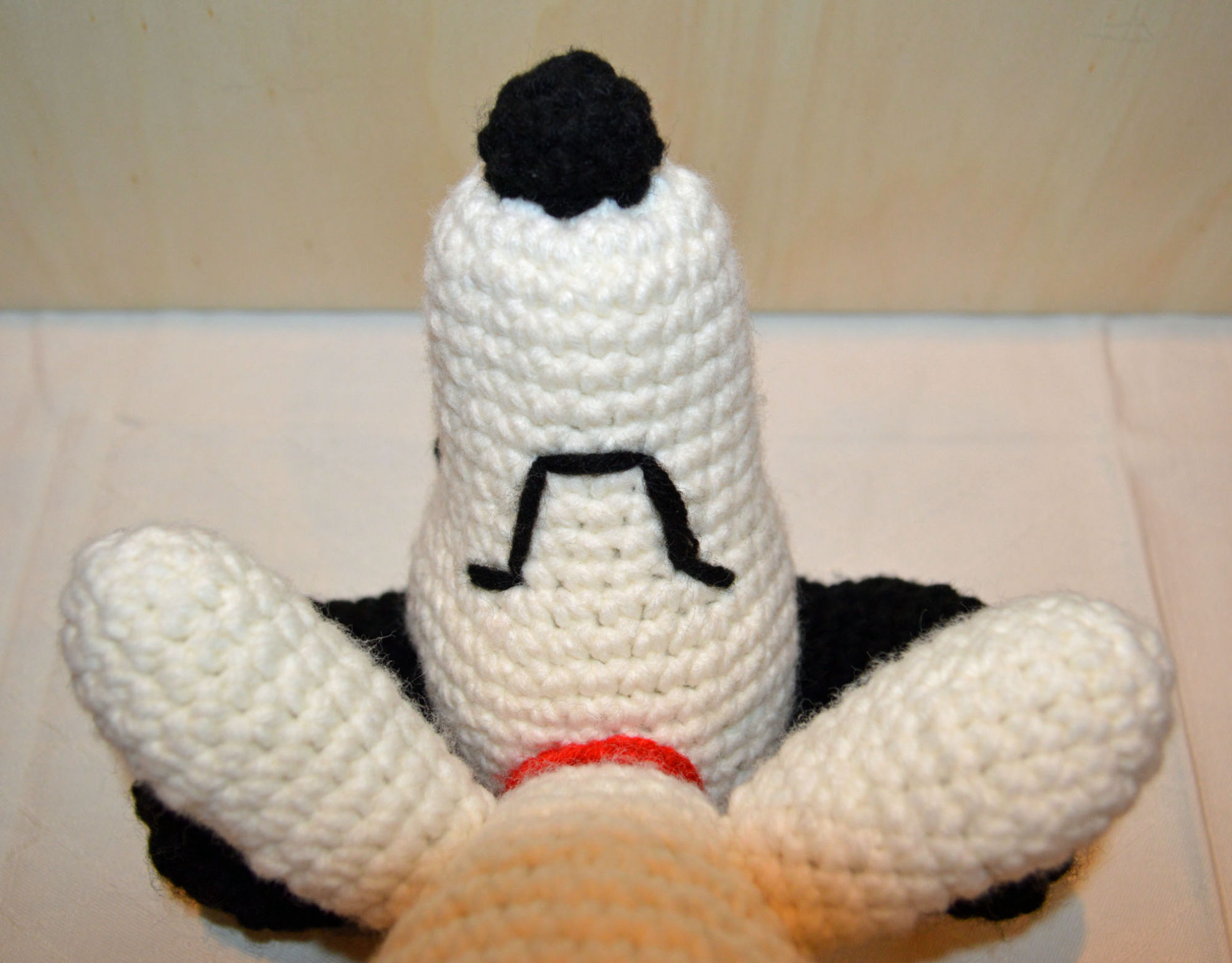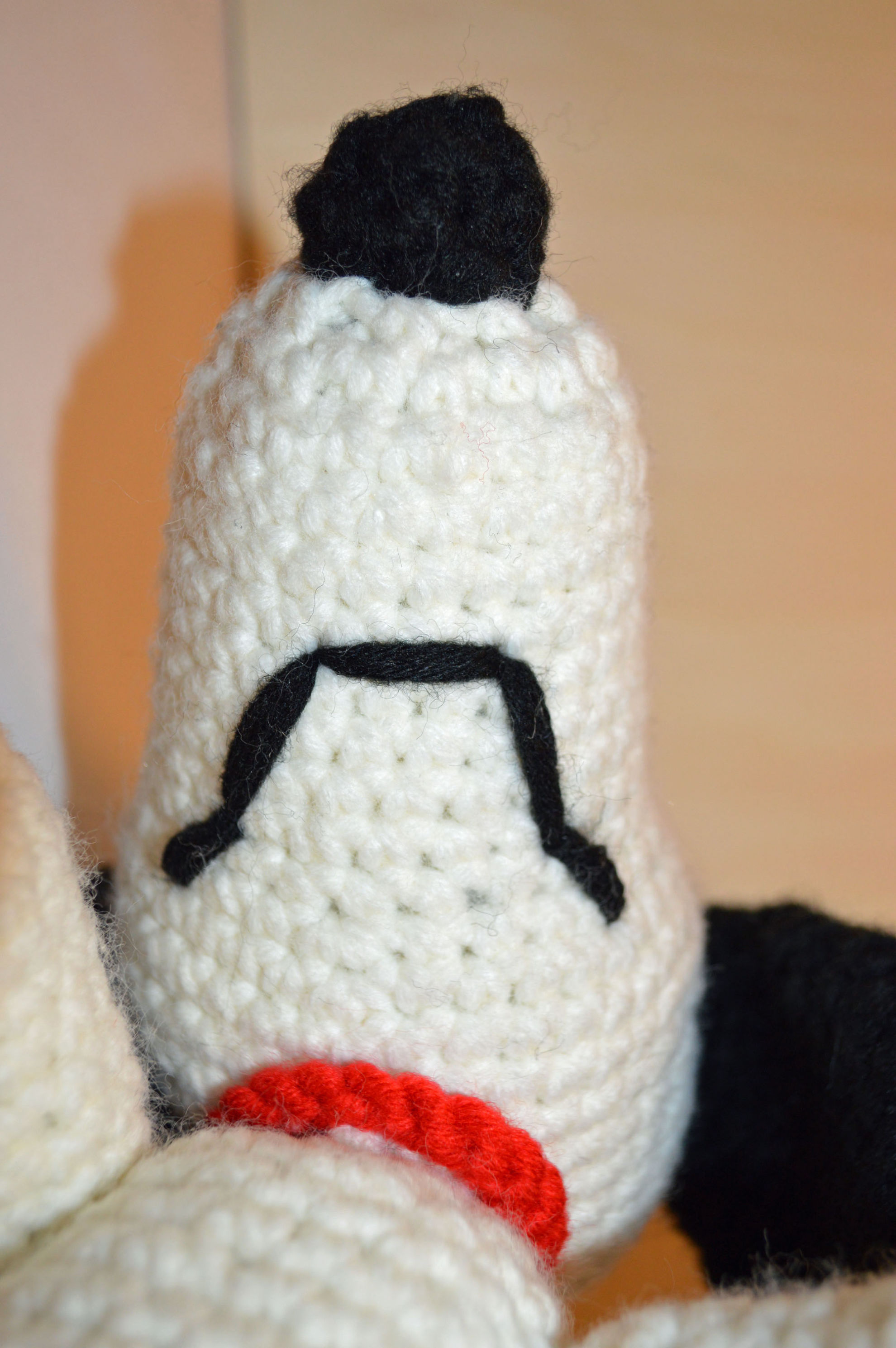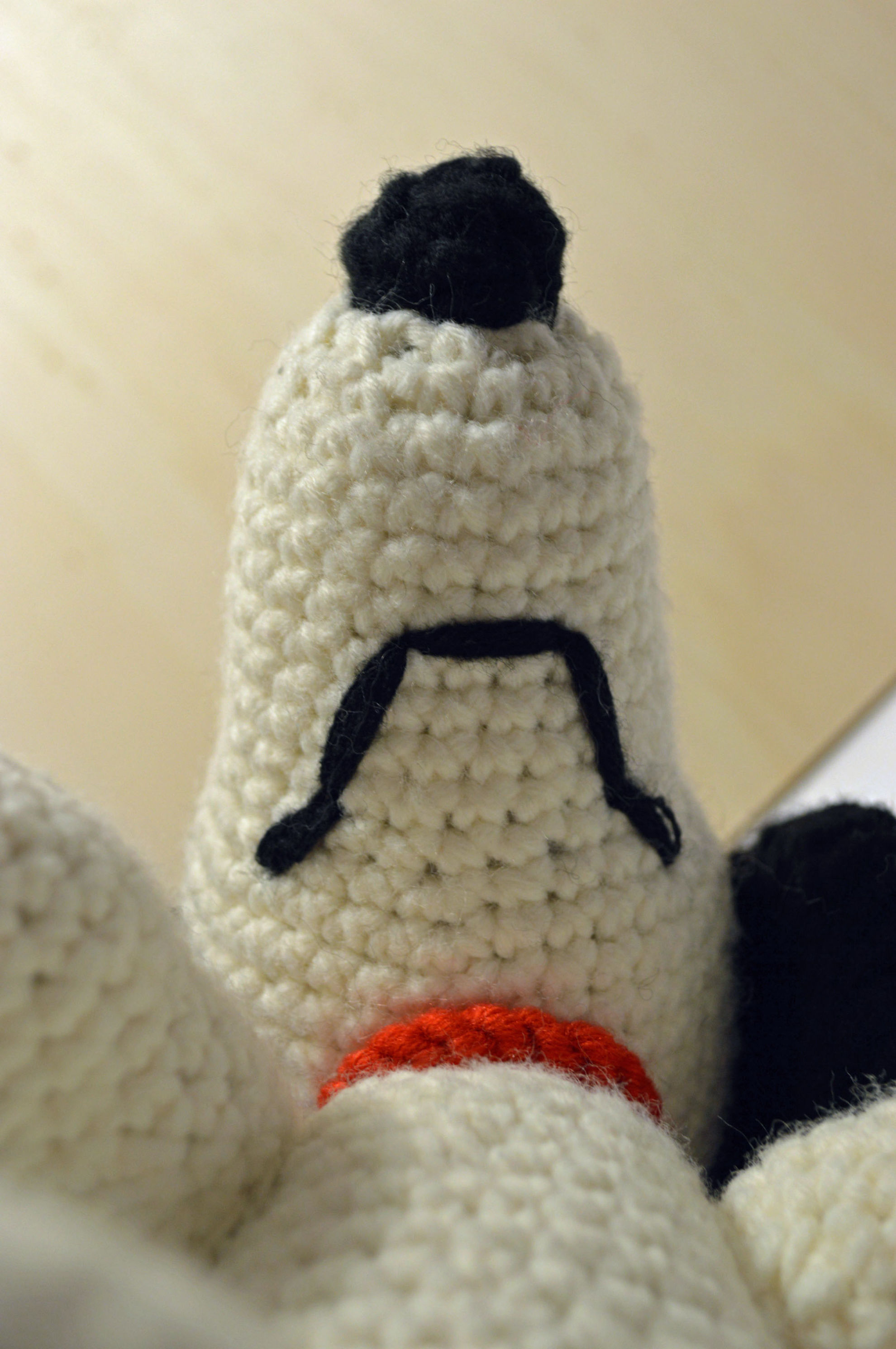 Material: My Boshi Garn No.1 Weiss, Schwarz, Rot, Bastelwatte